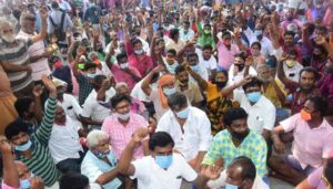 இந்த நிலையில் கடைகளை மூடுவதற்கு சிறு வியபாரிகள் எதிர்ப்பு தெரிவித்துள்ளனர். இதனால் தங்களது வாழ்வாதாரம் கடுமையாக பாதிக்கப்படும் என்று எதிர்ப்பு தெரிவித்து 200-க்கும் மேற்பட்ட வியாபாரிகள் கோயம்பேடு அங்காடி நிர்வாக குழு அலுவலகத்தை முற்றுகையிட்டு போராட்டத்தில் ஈடுபட்டனர்.