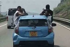 தெற்கு அதிவேக நெடுஞ்சாலையில், வீதி விதிமுறைகளை மீறி, காரொன்றில் பயணம் செய்த நால்வரையும் தேடும் நடவடிக்கைகள் முன்னெடுக்கப்பட்டுள்ளன என பொலிஸார் தெரிவித்தார்.