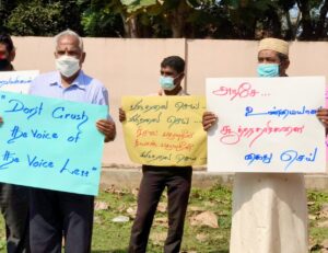 அகில இலங்கை மக்கள் காங்கிரஸ் கட்சியின் தலைவரும், முன்னாள் அமைச்சரும், வன்னி மாவட்ட பாராளுமன்ற உறுப்பினருமான ரிசாட் பதியுதீனின் கைது ஒரு அரசியல் பழிவாங்கல் எனவும், ரிசாட் பதியதீன், அசாத்சாலி உள்ளிட்டவர்களை விடுதலை செய்யுமாறு வலியுறுத்தியும் குறித்த போராட்டம் சுகாதார வழிமுறைகளை பின்பற்றி இடம்பெற்றது.