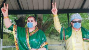 கொரோனா தொற்றில் இருந்து பாதுகாத்து கொள்ள முக கவசம் அணிவது எவ்வளவு முக்கியம் என்பதை உணர்த்தும் வகையில் தனது கடை அருகே உள்ள முன்னாள் முதல்-அமைச்சர்களான எம்.ஜி.ஆர்., ஜெயலலிதா சிலைகளுக்கு தவமணி முக கவசங்களை மாட்டி விட்டு வாடிக்கையாளர்களுக்கு விழிப்புணர்வு ஏற்படுத்தினார்.