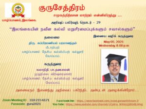 தமிழீழம் குருசேத்திரம் – இணைய வழி கருத்துரை Posted on May 4, 2021 at 14:57 by தென்னவள் 317 0 இலங்கையின் நவீன க்ல்வி மறுசீரமைப்புக்களும் சலால்களும்