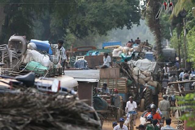 இழுவை வண்டியில் அள்ளிக் குவித்து