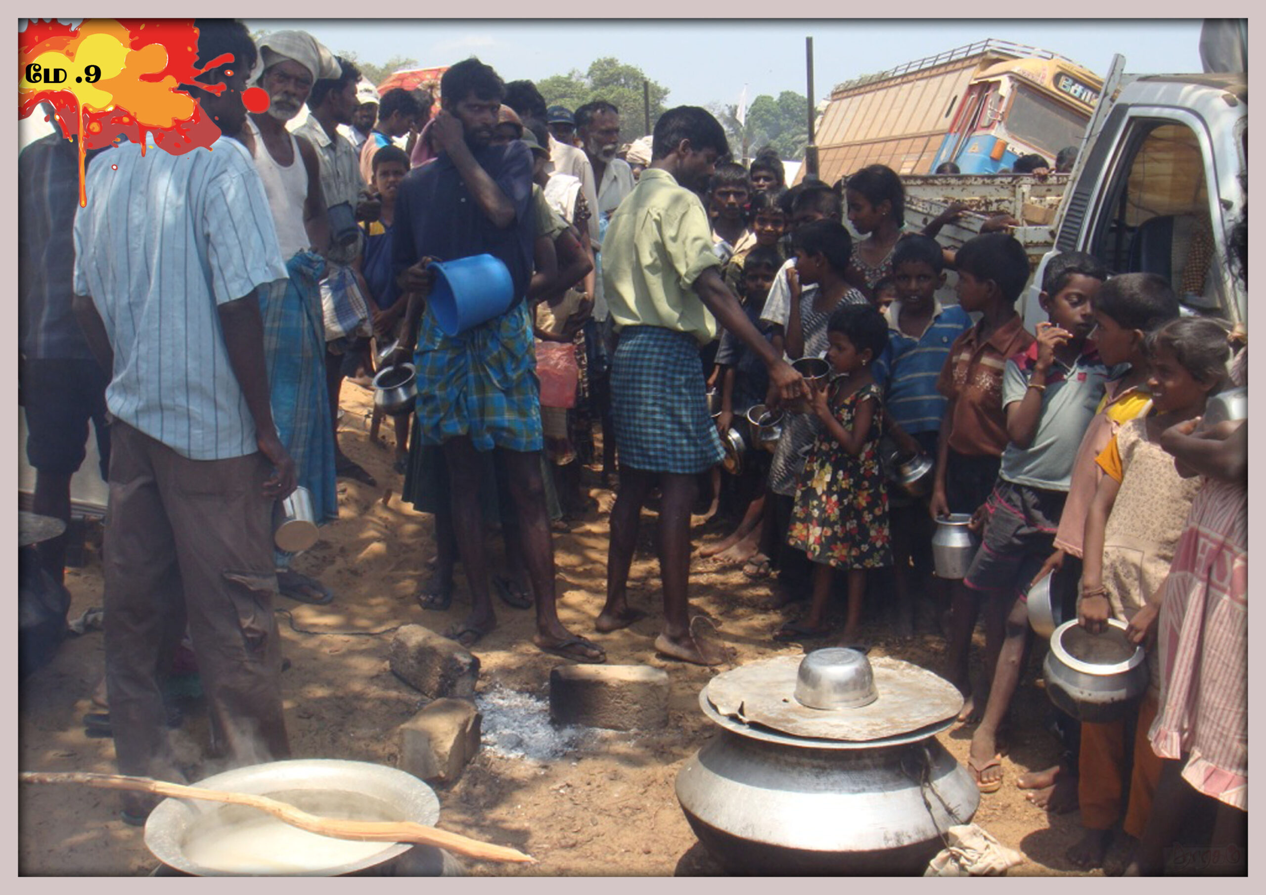 அதே வேளை 120,000-165,000 உட்பட்ட மக்கள் வசிக்கிறார்கள் என்று கணக்கிடப்பட்ட வன்னிப்பகுதியில் (முள்ளிவாய்க்கால்) ஊட்டச்சத்து குறைபாட்டால் கர்ப்பிணி பெண்களும் பாலுாட்டும் தாய்மாரும், வயது முதிர்ந்தவர்களும் பெரும் இன்னல்களை சந்தித்தார்கள், கர்ப்பிணிப் பெண்களும், பாலூட்டும் தாய் மாரும் அந்த சிறிய பாடசாலையில் இயங்கும் வைத்தியசாலையில் தங்களுக்கு பால்மா வழங்குமபடி வைத்தியர்களை கெஞ்சிக் கொண்டிருந்தார்கள் வைத்தியசாலையிலோ அத்தியவசிய பால்மா, மருந்துகள் என எவையும் இருப்பில் இல்லாததினால் வைத்தியர்களும் தன்னார்வலர்களும் எதுவும் செய்ய முடியாத கையறுநிலையில் இருந்தனர்.