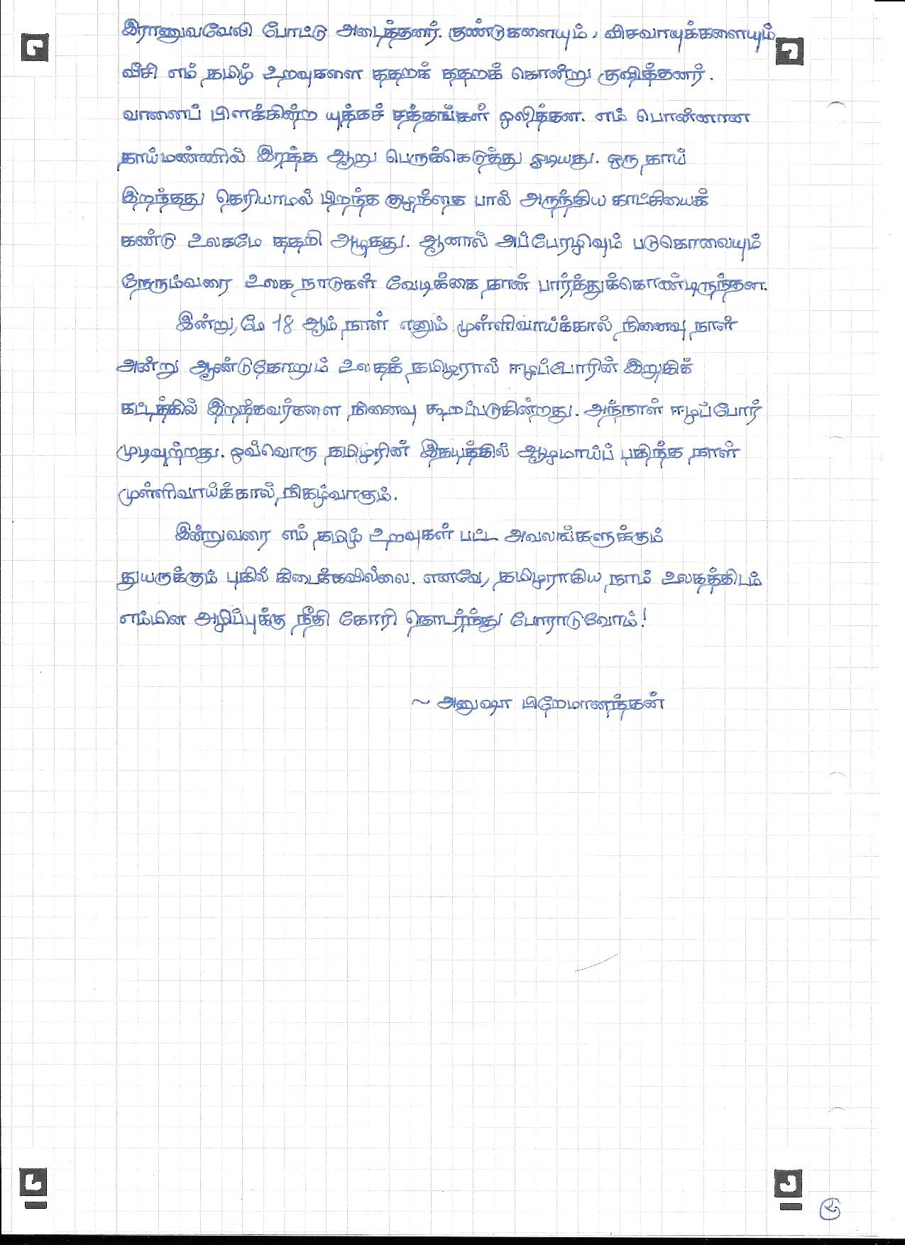 முள்ளிவாய்க்கால் தமிழினவழிப்பும் முள்ளிவாய்க்கால் நிகழ்வும் (கட்டுரை) அனுசா பிறேமானந்தன் லண்டவ் தமிழாலயம். Posted on May 11, 2021 at 17:46 by சமர்வீரன் 660 0 தமிழினவழிப்பும் முள்ளிவாய்க்கால் நிகழ்வும் (கட்டுரை) அனுசா பிறேமானந்தன் லண்டவ் தமிழாலயம்.
