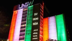 இந்நிலையில், ஆஸ்திரேலிய நாட்டின் தலைநகர் சிட்னியில் உள்ள நியூ சவுத் வேல்ஸ் பல்கலைக்கழகம் கொரோனா பாதிப்பில் இருந்து இந்தியா மீண்டு வர துணை நிற்பதாக தெரிவித்துள்ளது. அப்பல்கலைக்கழகத்தின் பிரதான நூலக கட்டிடத்தில் இந்திய தேசிய கொடியை பிரதிபலிக்கும் வகையில் மின்விளக்குகளால் அலங்கரிக்கப்பட்டுள்ளது.