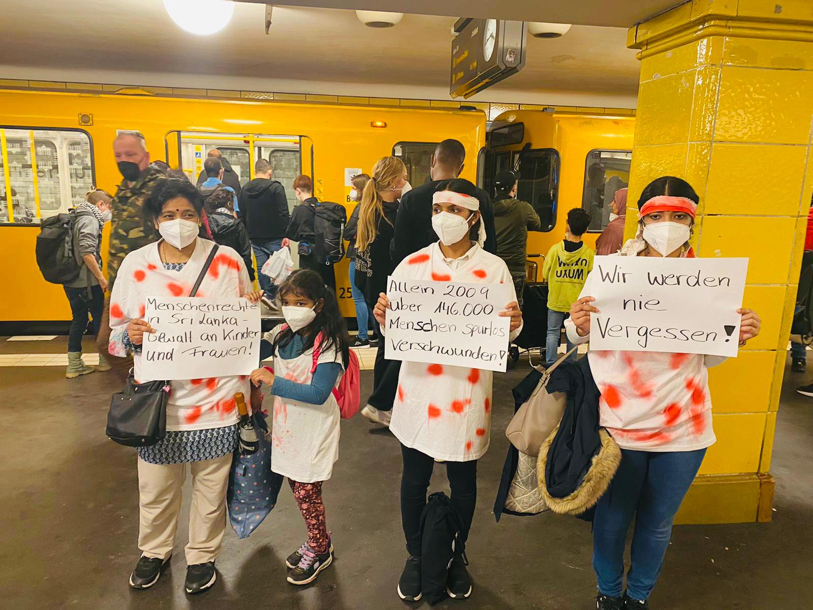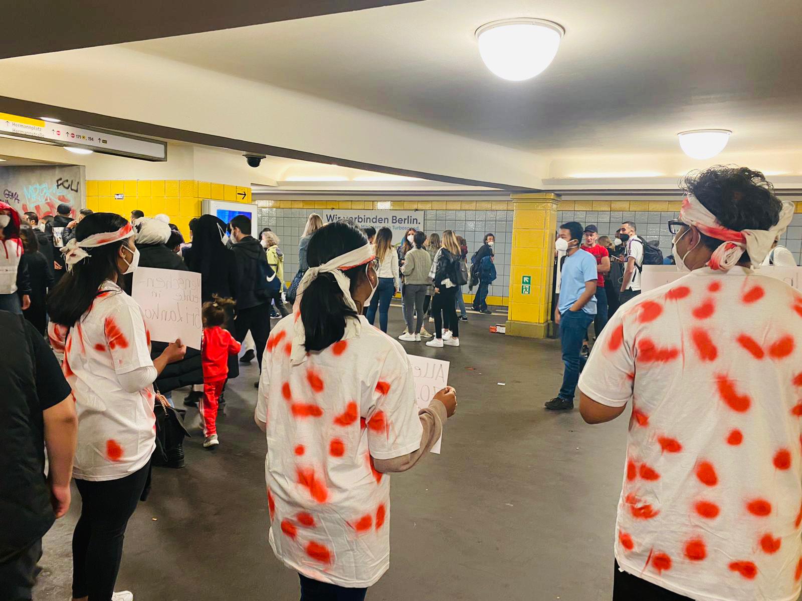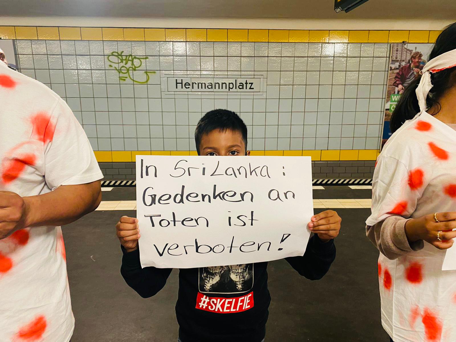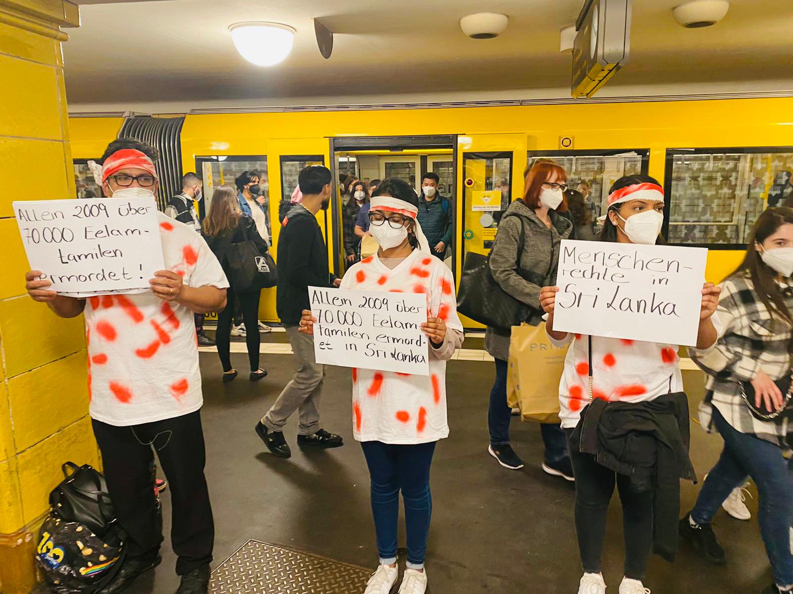 மே 18 – தமிழின அழிப்பு வாரத்தை முன்னிட்டு யேர்மன் தலைநகரில் இன்றைய தினம் ஆயிரக்கணக்கான மக்கள் நடமாடும் தொடருந்து நிலையத்தில் குருதியில் தோய்ந்த காட்சியுடன் தமிழின அழிப்பை வெளிப்படுத்தும் முகமாக வாசகங்களை தாங்கியவாறு இளையோர்கள் கவனயீர்ப்பில் ஈடுபட்டனர்.