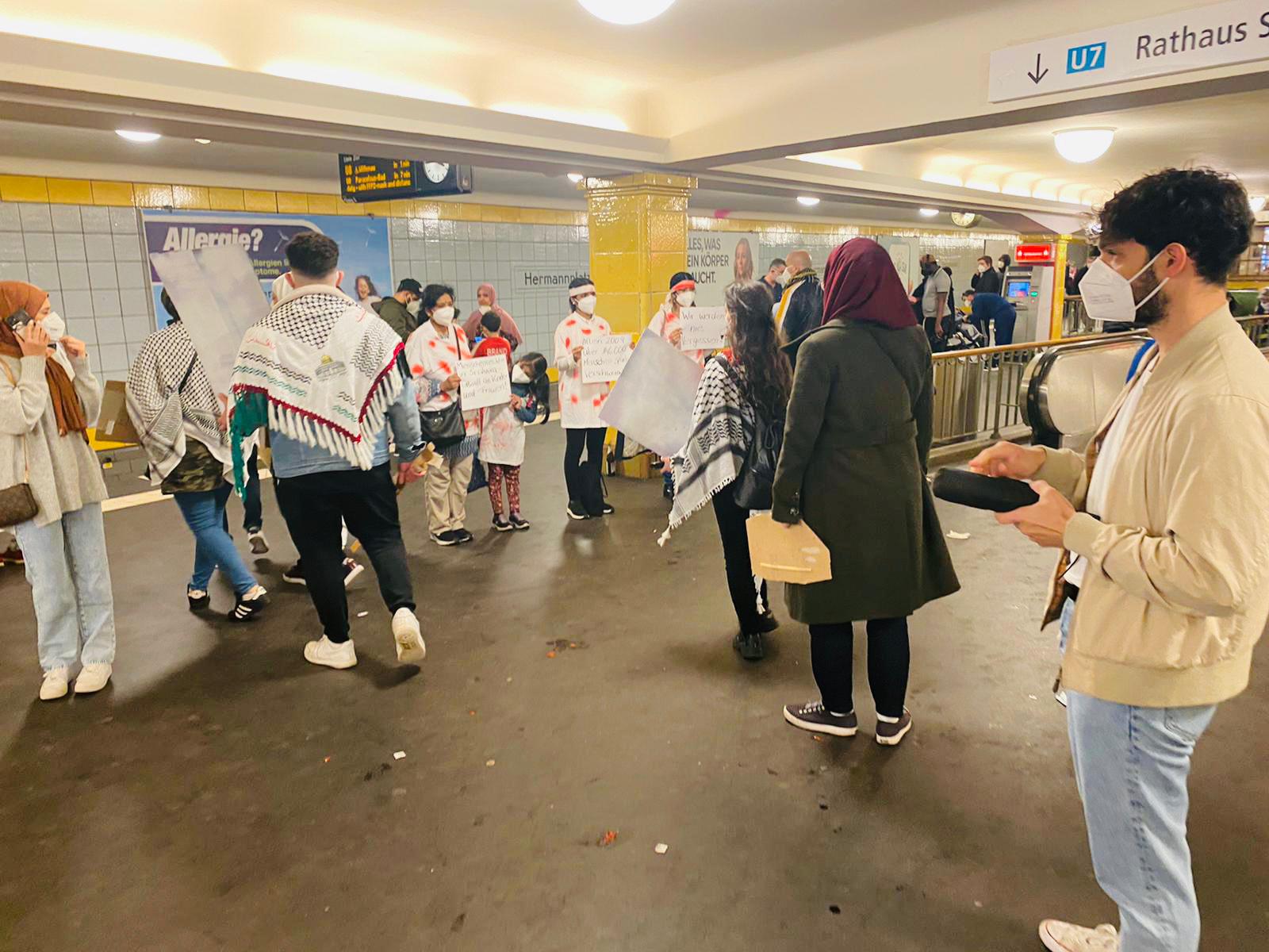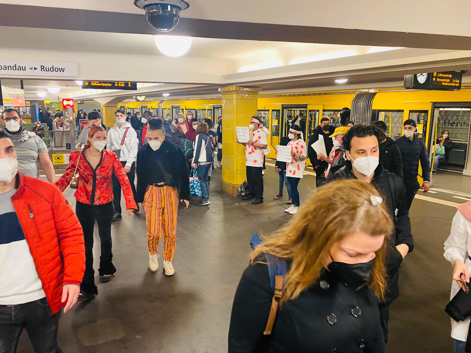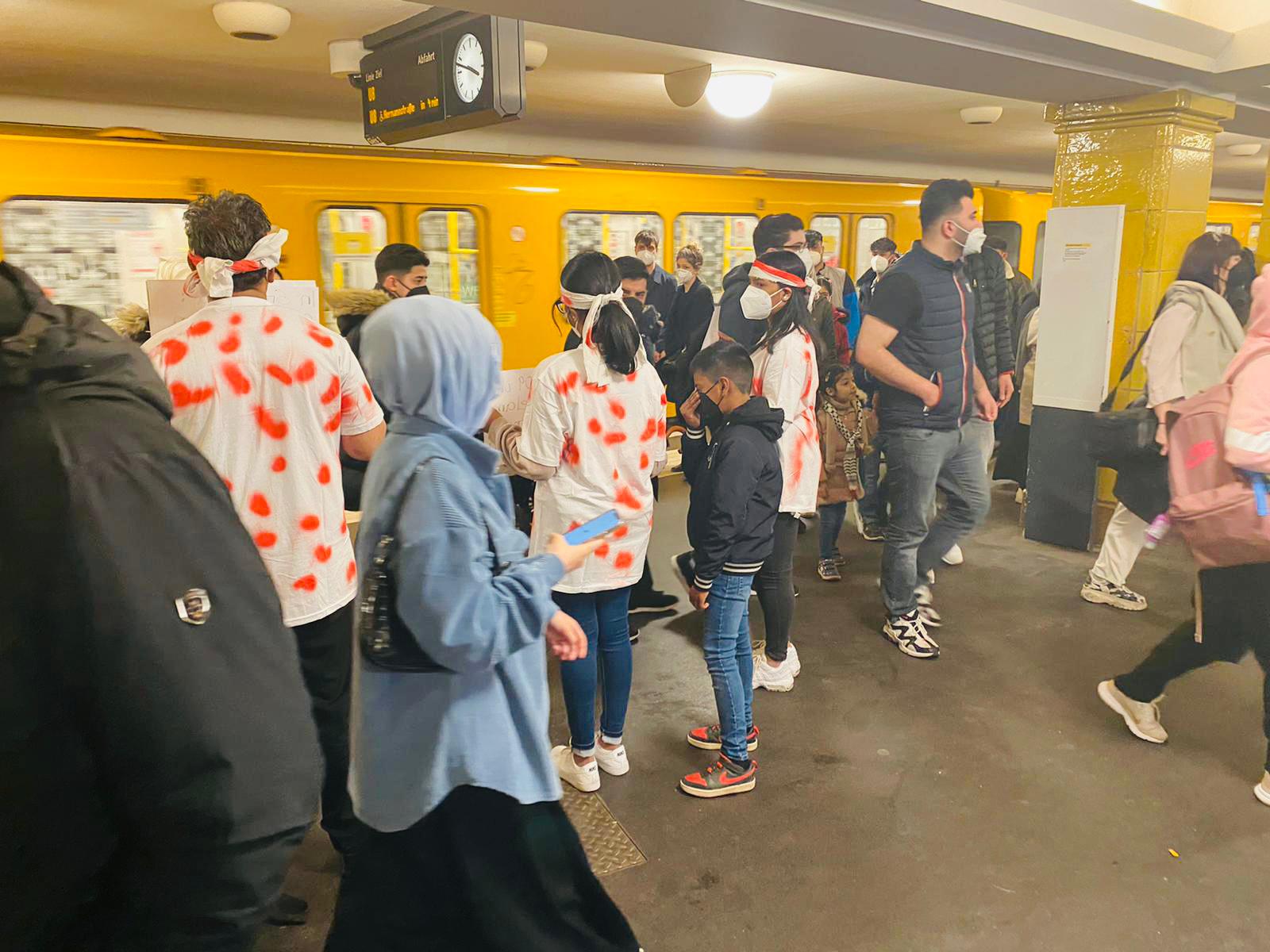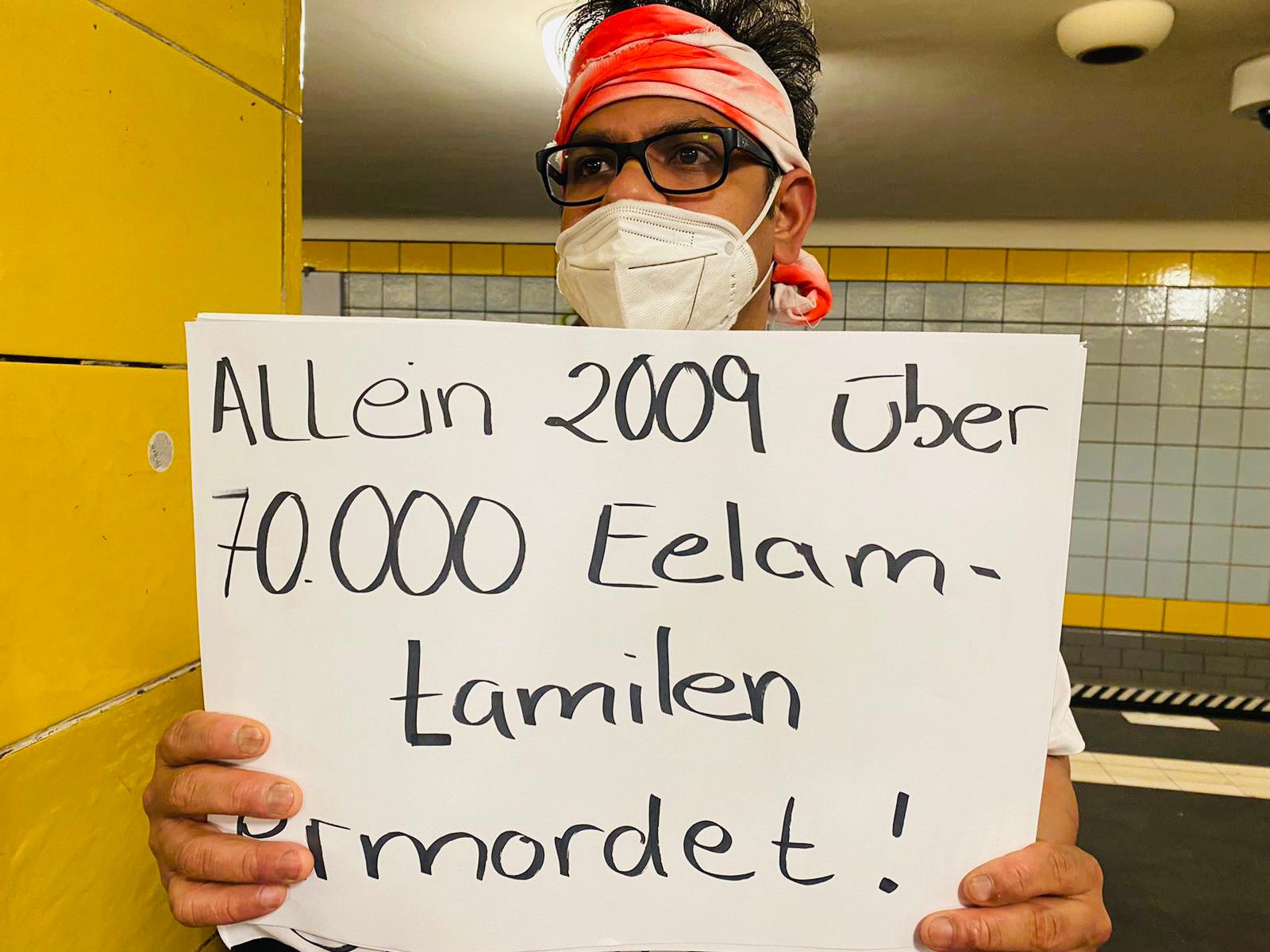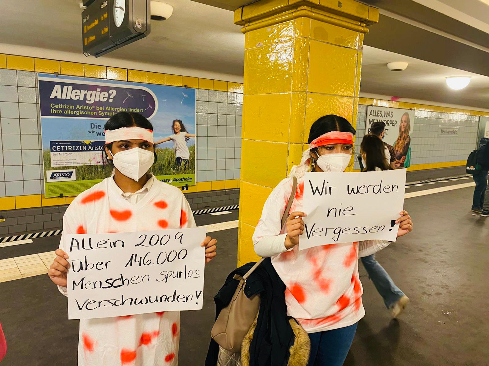 மே 18 – தமிழின அழிப்பு வாரத்தை முன்னிட்டு யேர்மன் தலைநகரில் இன்றைய தினம் ஆயிரக்கணக்கான மக்கள் நடமாடும் தொடருந்து நிலையத்தில் குருதியில் தோய்ந்த காட்சியுடன் தமிழின அழிப்பை வெளிப்படுத்தும் முகமாக வாசகங்களை தாங்கியவாறு இளையோர்கள் கவனயீர்ப்பில் ஈடுபட்டனர்.