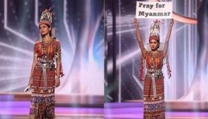 அவர் மியான்மரின் பாரம்பரிய உடையில் மேடையில் அழகு நடை போட்டு வந்த போது ‘‘மியான்மருக்காக பிரார்த்தியுங்கள்’’ என்கிற பதாகையை கையில் ஏந்தி வந்தார். அதன் பின்னர் அவர் பேசியபோது ‘‘எங்கள் மக்கள் ஒவ்வொரு நாளும் இறந்து கொண்டிருக்கிறார்கள். ராணுவத்தால் சுடப்படுகிறார்கள். மியான்மரை பற்றி பேச அனைவரையும் நான் கேட்டுக்கொள்ள விரும்புகிறேன். பிரபஞ்ச அழகியின் மியான்மர் போட்டியாளர் என்கிற முறையில் ஆட்சி கவிழ்ப்பு முதல் என்னால் முடிந்த வரை நான் பேசிக்கொண்டு இருக்கிறேன். எல்லோரும் மியான்மருக்காக பேசுமாறு கேட்டுக்கொள்கிறேன்’’ என கூறினார்.