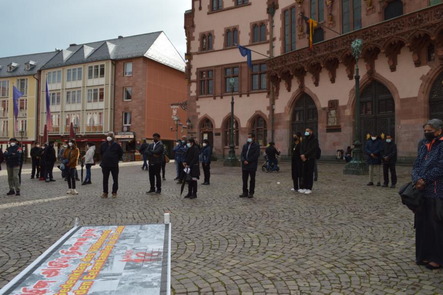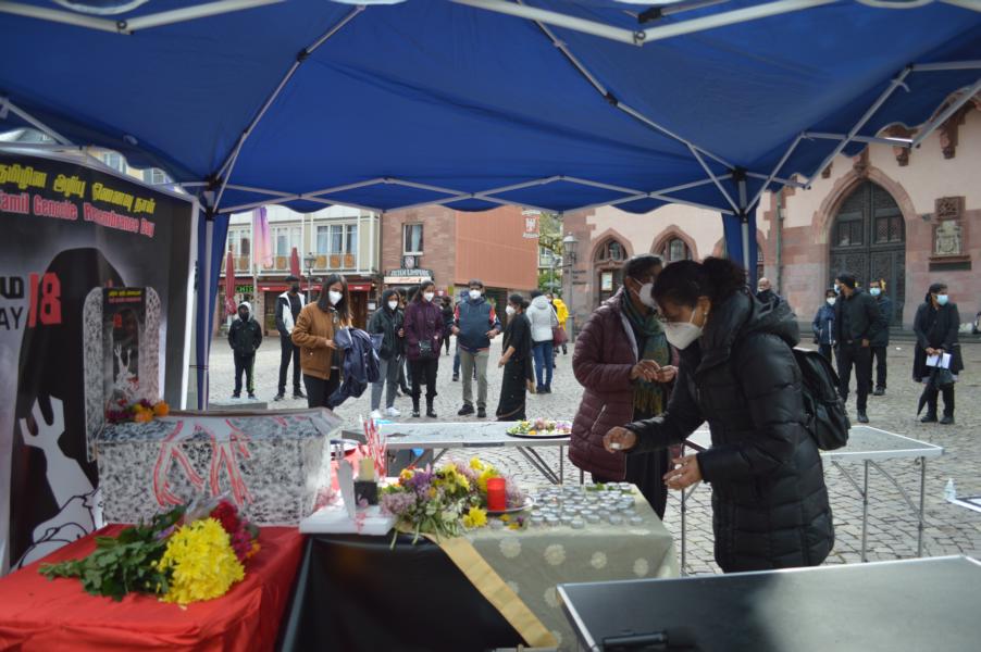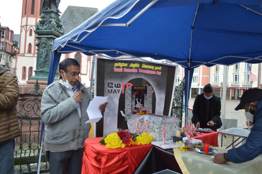 முள்ளிவாய்க்கால் தமிழ் இன அழிப்பின் 12 ஆவது ஆண்டு நிறைவு நாள் பிராங்பேர்ட் மாநகரில் இன்று (18.05.2020 ) நினைவு கூரப்பட்டது. நகரின் மத்தியில் ஒன்றிணைந்த தமிழ்மக்கள் சிங்கள பௌத்த பேரினவாத அரசால் படுகொலை செய்யப்பட்ட உறவுகளிற்கும் , தமிழீழ விடுதலைக்காக தங்கள் இன்னுயிர்களை ஈகம் செய்த மாவீரர்களிற்கும் சுடர்வணக்கம் மலர்வணக்கம் கவிவணக்கம் செய்தனர்.நிகழ்வானது சீரற்ற காலநிலையிலும் கொரோனா தொற்றுநோயினால் ஏற்பட்டுள்ள அச்ச நிலைமைக்கு மத்தியிலும் யேர்மனிய அரச சுகாதாரப் பிரிவின் அறிவுறுத்தலுக்கு அமைய சமூக இடைவெளியை பேணியவாறு அமைதியாக நடந்தேறியது. புலம்பெயர் தேசத்தில் பிறந்து வளர்ந்தாலும் தம் தாயக விடுதலை உணர்வை மனதில் நிறுத்தி இந்நிகழ்வை இளையோர்களே ஒழுங்குசெய்து நடாத்தியிருந்தார்கள்.