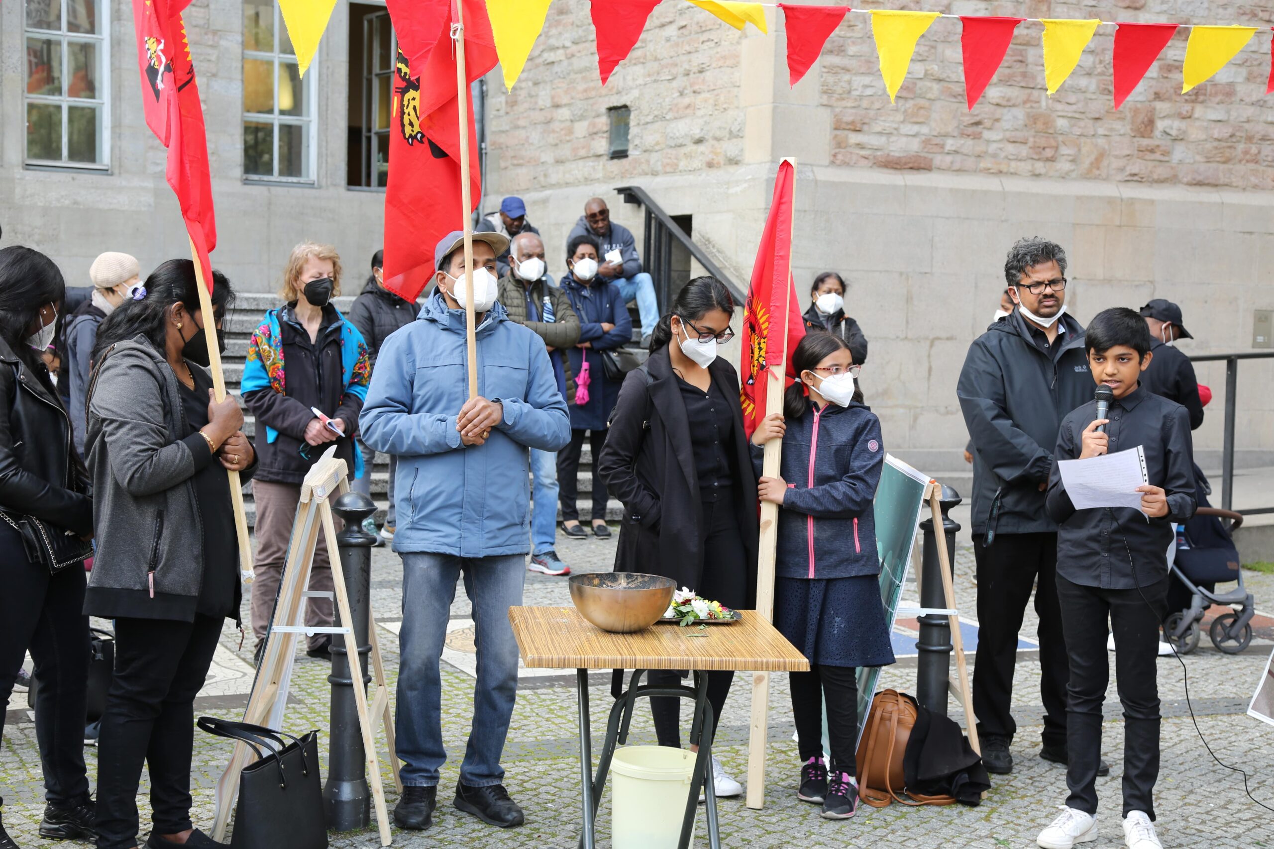 ஈழத்தமிழர்கள் மீது நடைபெற்ற இன அழிப்பிற்கு நீதி கிடைக்கவும் , தமிழ் மக்கள் சுதந்திரமாக தமது தாயகத்தில் , தமிழீழத்தில் வாழவும் தாம் முழுமையான ஆதரவை தெரிவிப்பதாக உறுதியளித்து பலஸ்தீன , குர்திஸ்தான் மற்றும் சூடான் இன பிரதிநிதிகள் சிறப்புரை ஆற்றினார்கள். தொடர்ந்து முள்ளிவாய்க்கால் வலியை எடுத்துரைக்கும் கவிதைகள் இடம்பெற்றது. அத்தோடு முள்ளிவாய்க்காலில் ஒரு தமிழ் சகோதரி அனுபவித்த வலியின் உச்சத்தை நாடகமாக யேர்மன் மொழியில் வழங்கிய தமிழ் இளையோர் அமைப்பு , நிகழ்வில் கலந்துகொண்ட மக்களின் கண்களில் கண்ணீர் வழிய செய்தனர்.