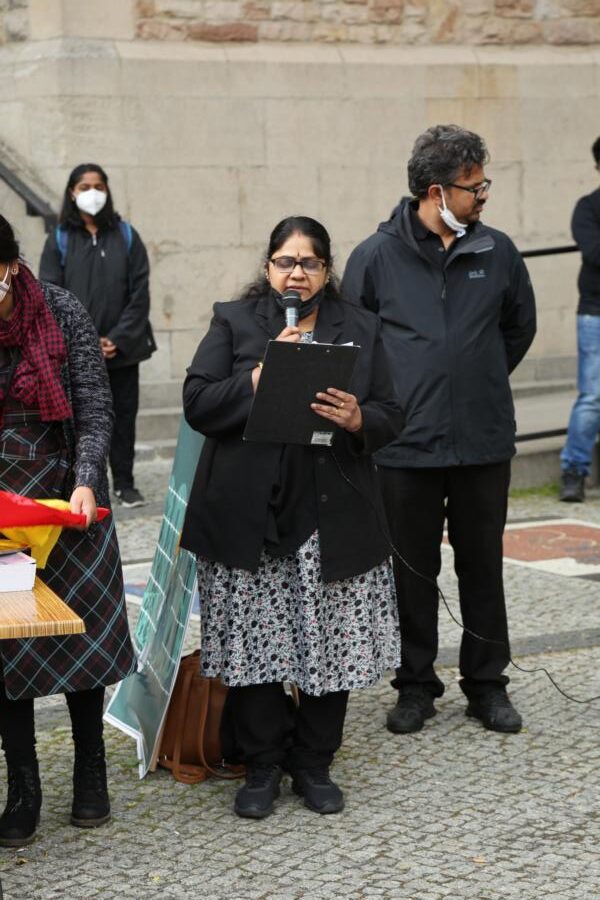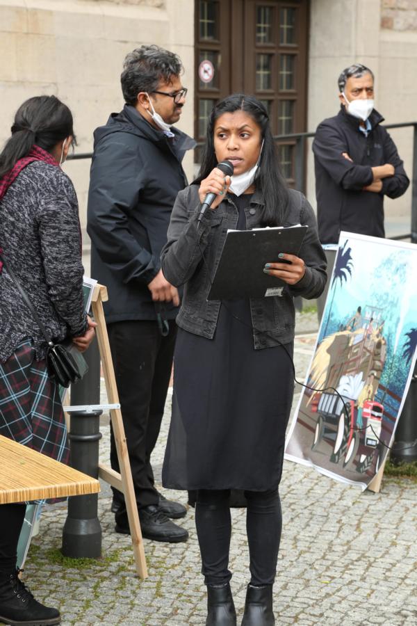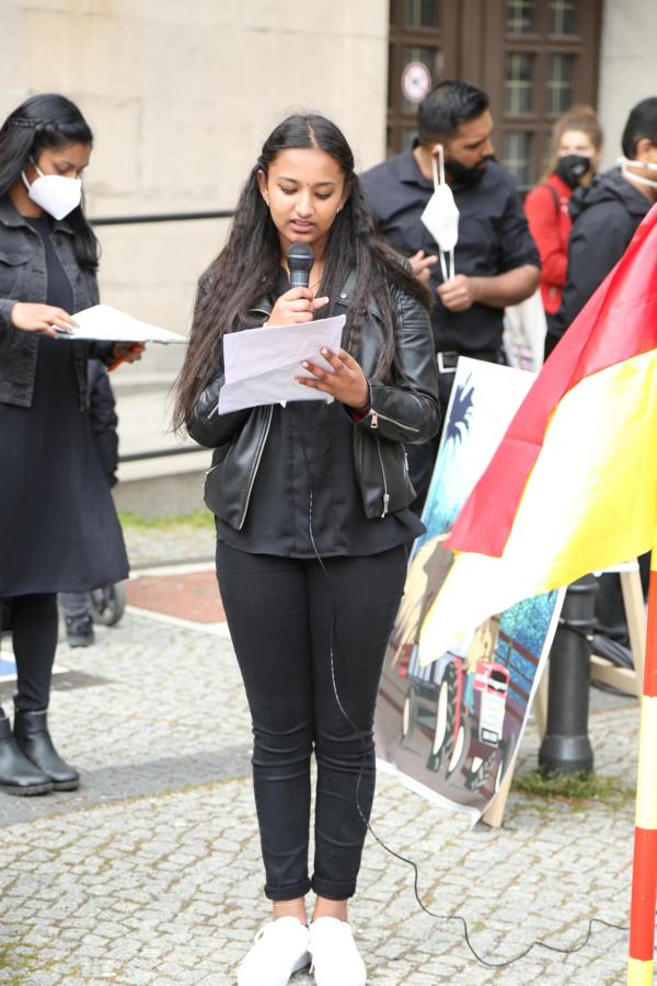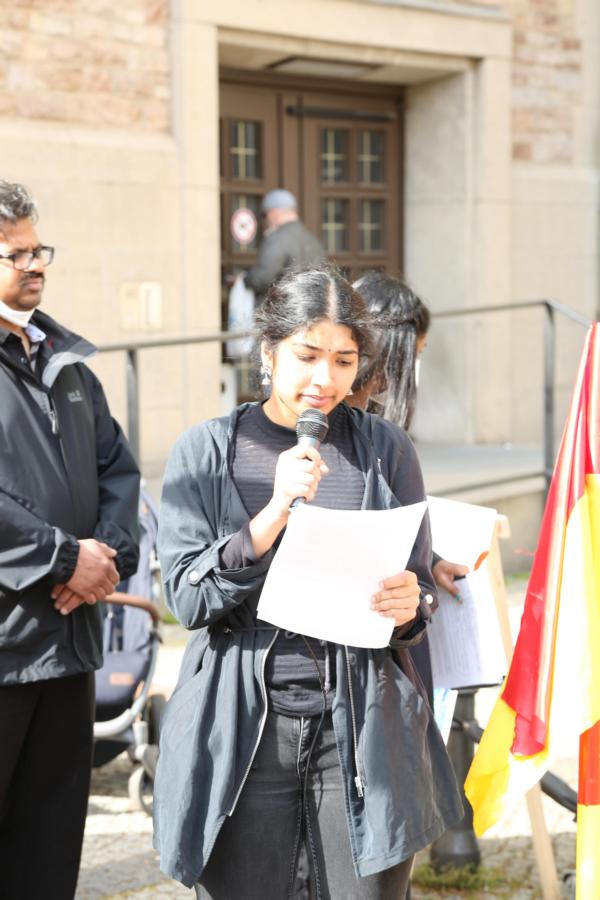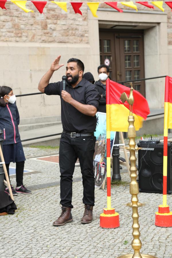 “ஓர் இனத்தின் தேசத்தை, வீரஇனத்தின் இருப்பை அழித்தொழித்துவிட்டு மாபெரும் இனவழிப்பை புரிந்து விட்டு சர்வதேசங்களை நோக்கி மமதையோடு ஆட்சிபுரியும் சிங்கள இனவாத அரசு அதன் இனவழிப்புப் போரிற்கு பதில் கூறும் தருணம் வந்துள்ளது. புதைந்து போனவை எம் உயிர்கள் மட்டுமே. போரில் சென்றவை எம் உடைமை மட்டுமே. சிதைந்து போனவை எம் உடல்கள் மட்டுமே. ஆனால் தமிழீழ கனவை யாராலும் அழித்துவிட முடியாது, எமது அடுத்த தலைமுறை அதற்காக தொடர்ந்தும் போராடும் என” தமிழர் ஒருங்கிணைப்புக் குழுவின் பேர்லின் மாநிலப்பொறுப்பாளர் அவர்கள் தனது உரையில் வலியுறுத்தினார்.