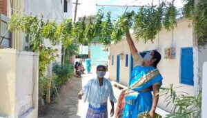 இந்தநிலையில் கோவை மதுக்கரை மரப்பாலம் பகுதியில் உள்ள பொதுமக்கள் கொரோனா அச்சத்தால் தங்கள் தெருக்கள் முழுவதும் வேப்பிலையை தோரணமாக கட்டி வருகின்றனர். மேலும் வேப்பிலையை நீரில் கலந்து கிருமி நாசினியாக வீதிமுழுவதும் தெளித்து வருகிறார்கள். கொரோனா போன்ற கொடிய நோயை விரட்டி தங்களை பாதுகாத்துக்கொள்ள தங்களின் நம்பிக்கைக்காக இவ்வாறு செய்து வருவதாக கூறினர். இதனால் அந்த பகுதி முழுவதும் பச்சைபசேலென காட்சி அளித்தது.
