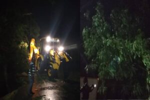 தற்போது வீசிவரும் கடும் காற்றினால் மின் கம்பத்தின் மீது தென்னை மரம் முறிந்து வீழ்ந்ததால் கிளிநொச்சியின் பச்சிலைப்பள்ளி பிரதேச செயலர் பிரிவுக்கு உட்பட்ட ஐந்து கிராமங்களுக்கான மின்சாரம் நேற்றிரவு துண்டிக்கப்பட்டுள்ளதால் குறித்த கிராமங்கள் இருளில் மூழ்கியுள்ளன.