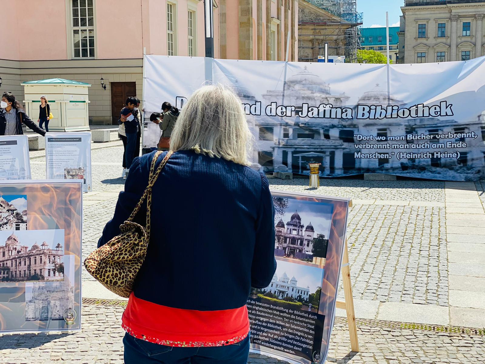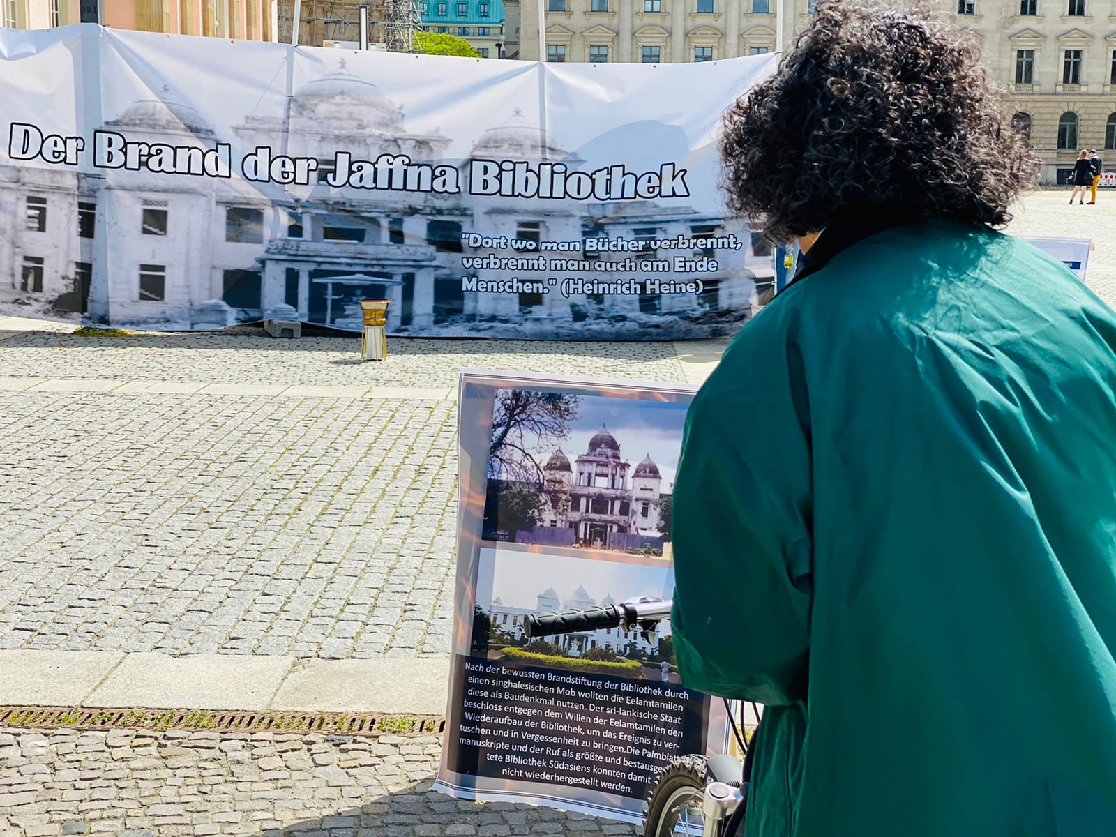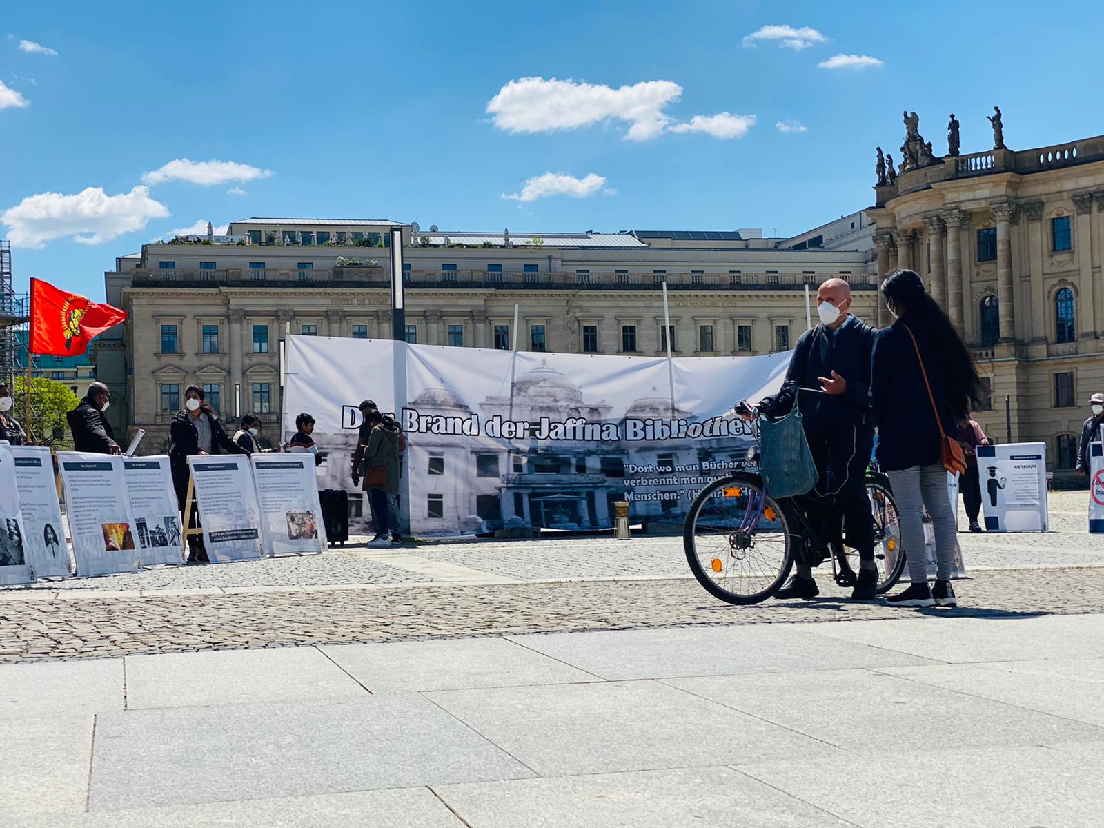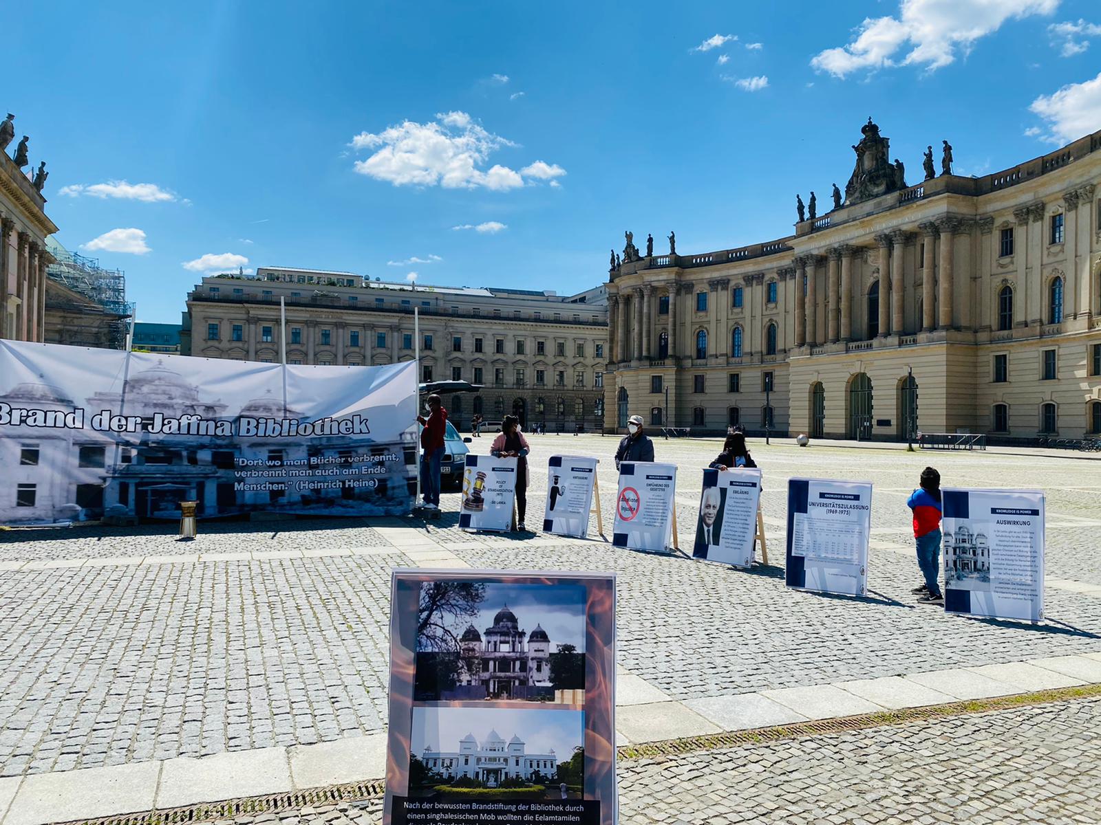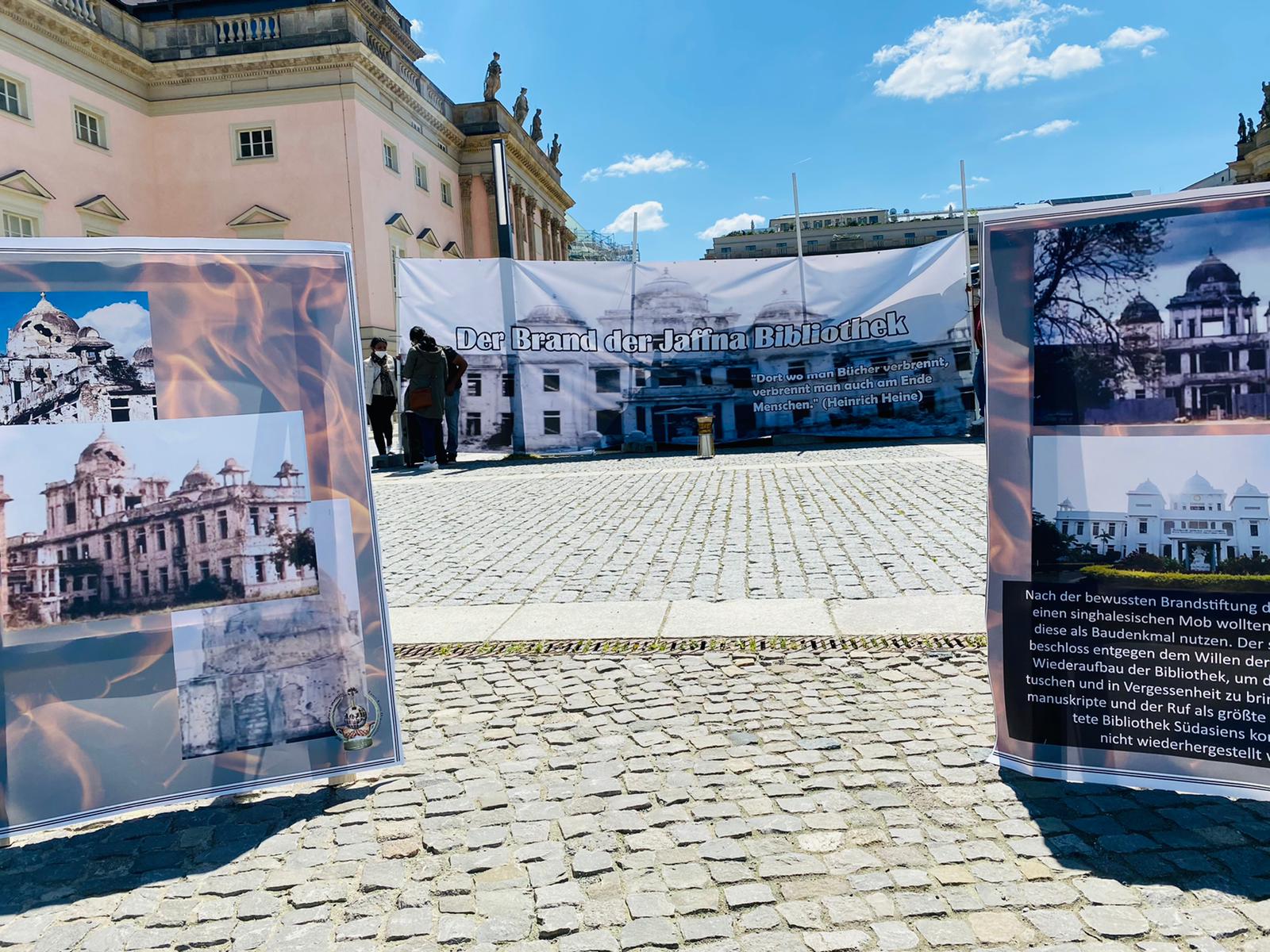 யூதர்களின் மீது இன அழிப்பை மேற்கொண்டபோது ஹிட்லர் தனது நாசிப் படைகளை ஏவி யூதர்களின் படைப்புகளைத் குவித்து அழித்த இடத்தில் (Bebelplatz, Berlin ) யாழ் நூலக எரிப்பின் 40 ஆம் ஆண்டு நினைவுவேந்தலை முன்னிட்டு கண்காட்சி நிகழ்வு இடம்பெற்றது.
