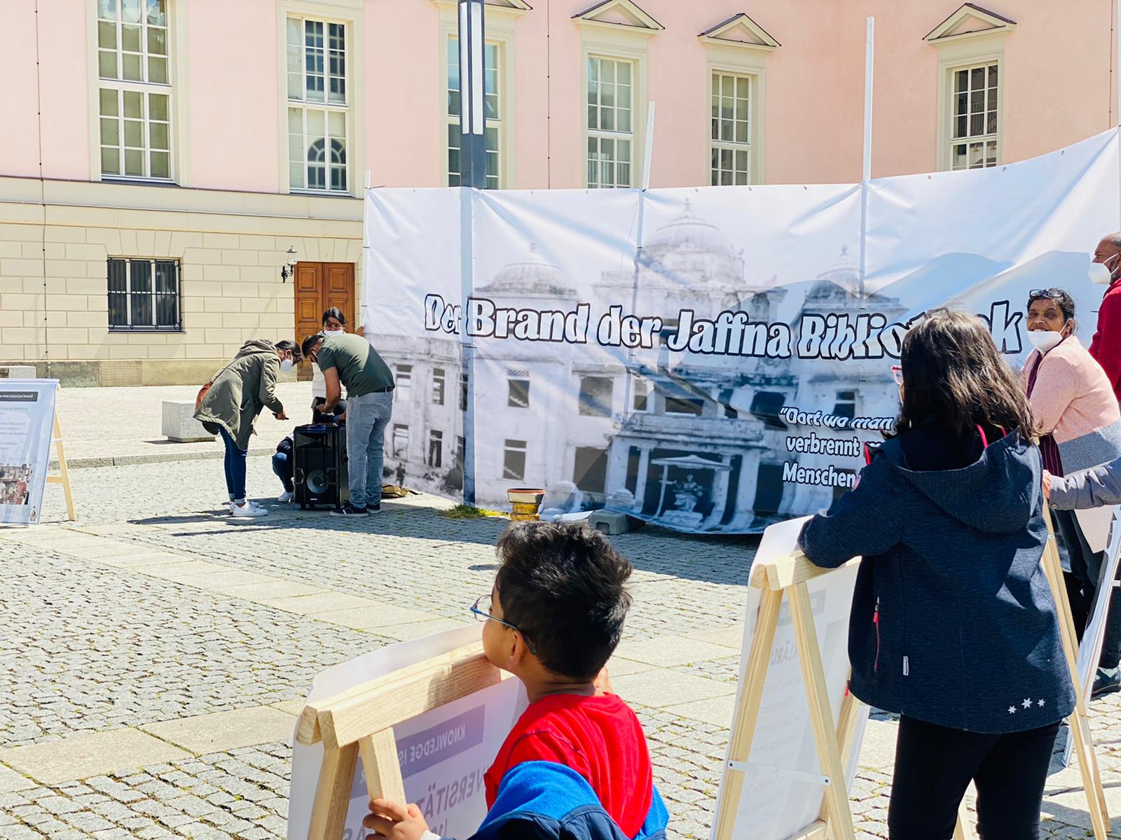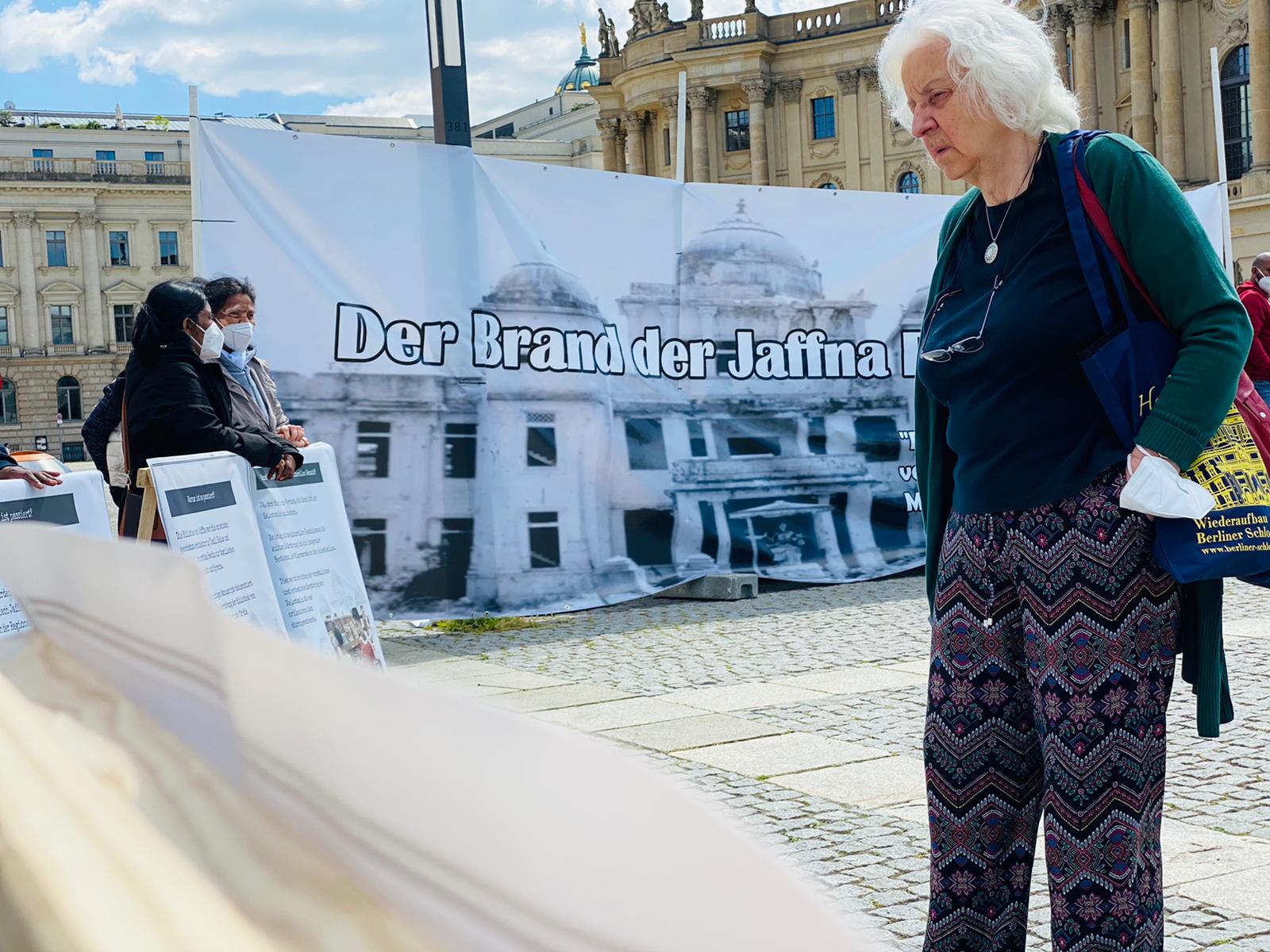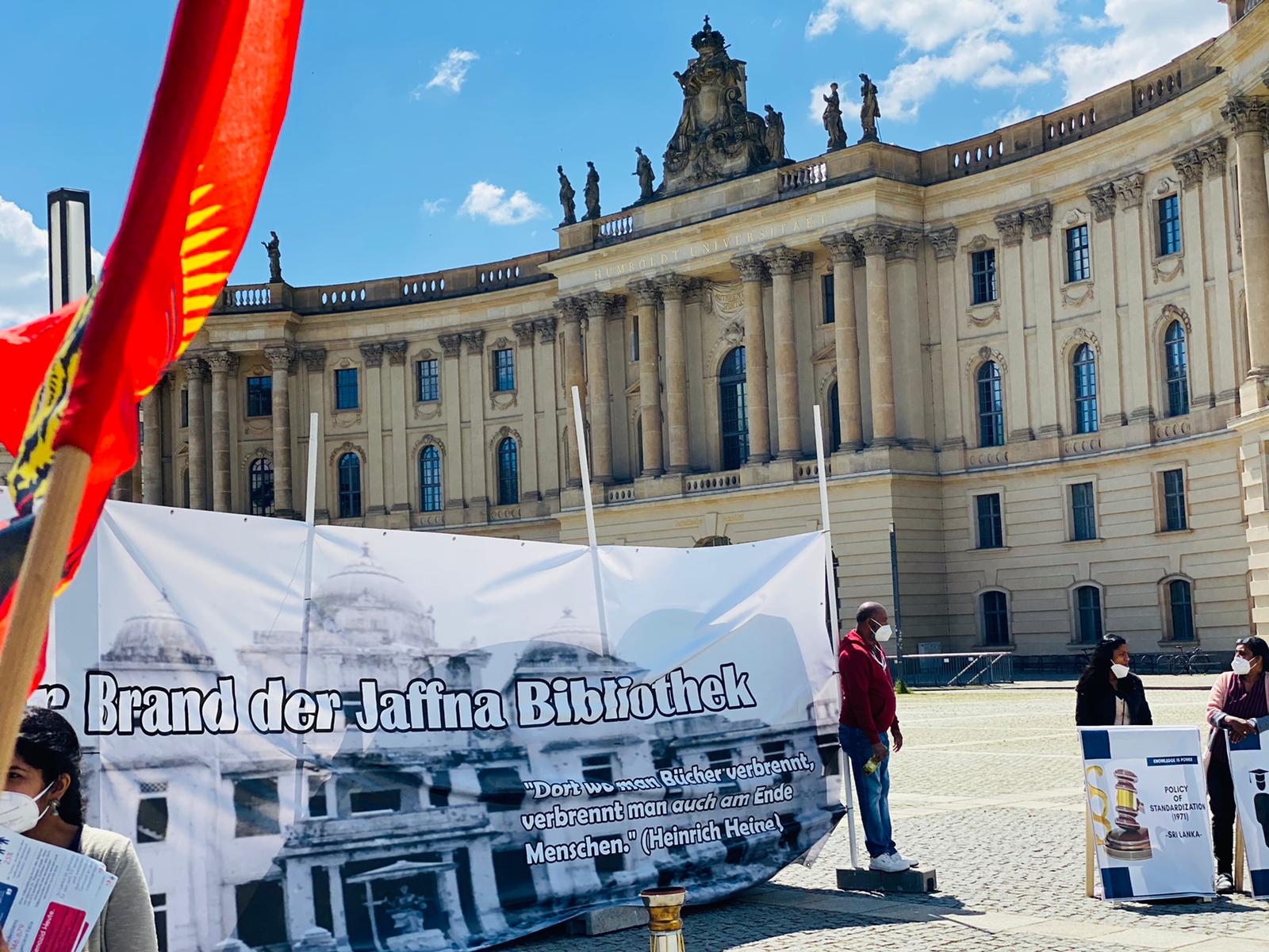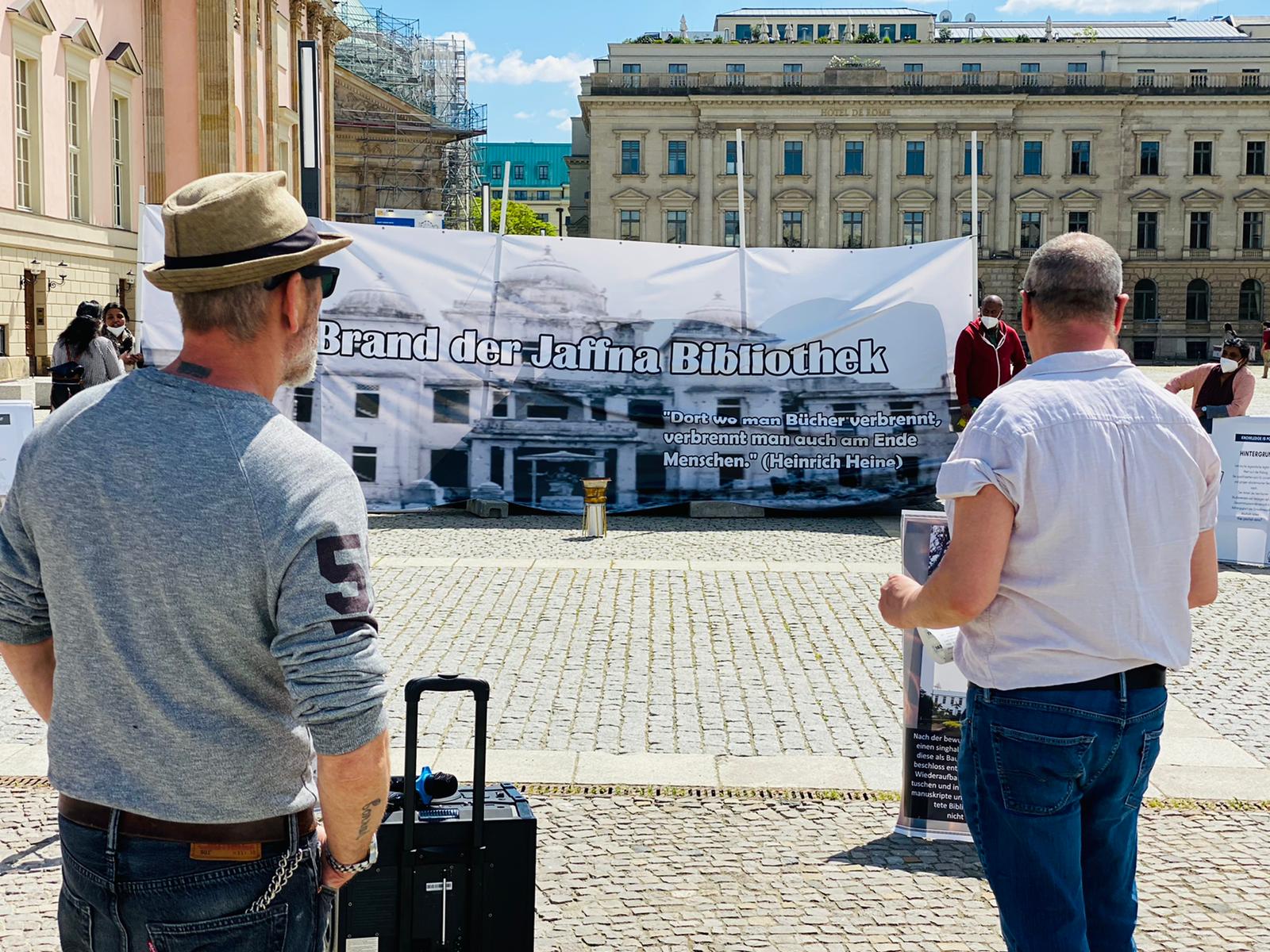 யூதர்களின் மீது இன அழிப்பை மேற்கொண்டபோது ஹிட்லர் தனது நாசிப் படைகளை ஏவி யூதர்களின் படைப்புகளைத் குவித்து அழித்த இடத்தில் (Bebelplatz, Berlin ) யாழ் நூலக எரிப்பின் 40 ஆம் ஆண்டு நினைவுவேந்தலை முன்னிட்டு கண்காட்சி நிகழ்வு இடம்பெற்றது.