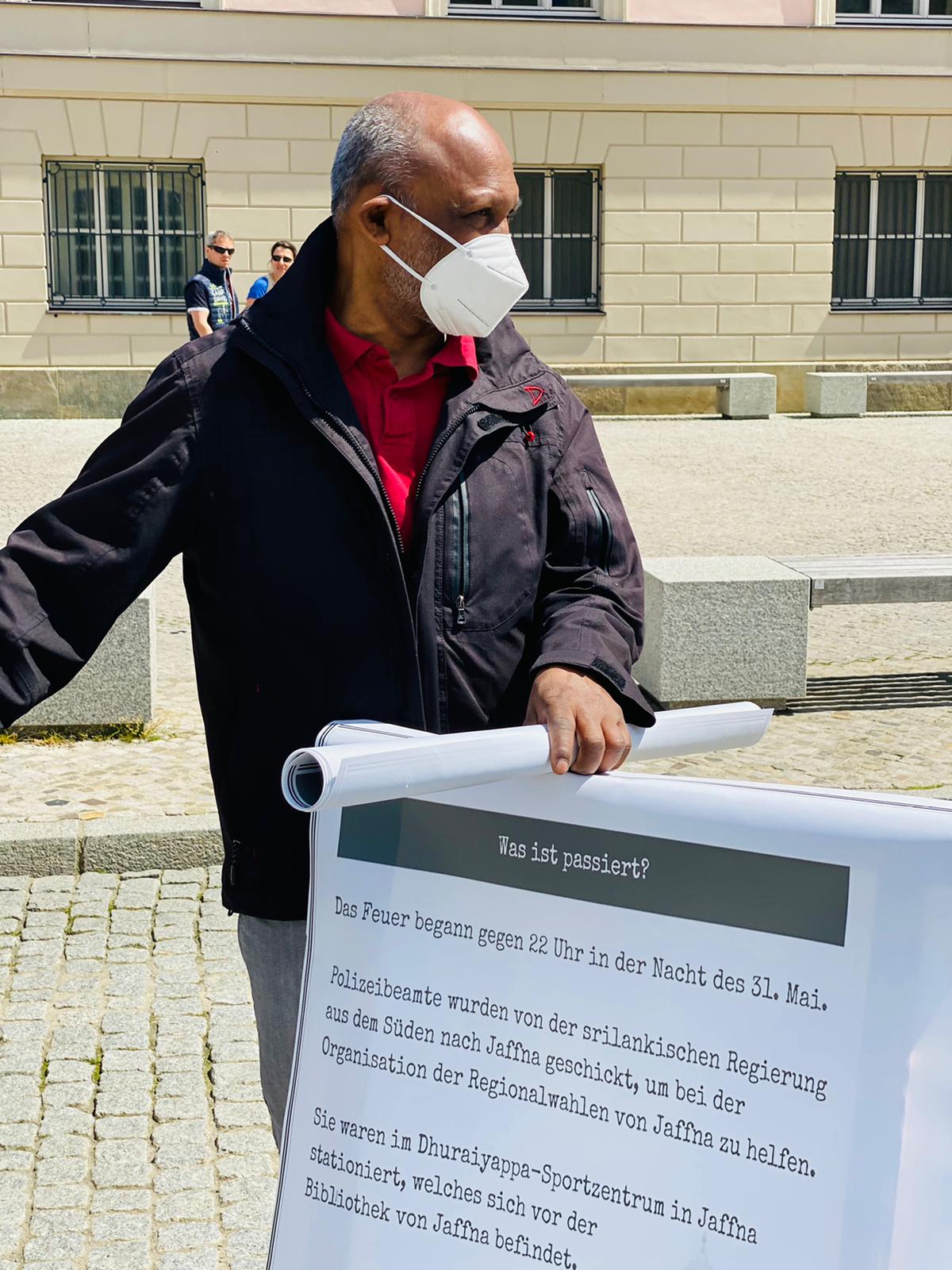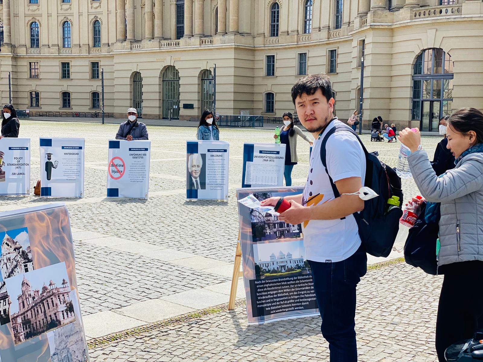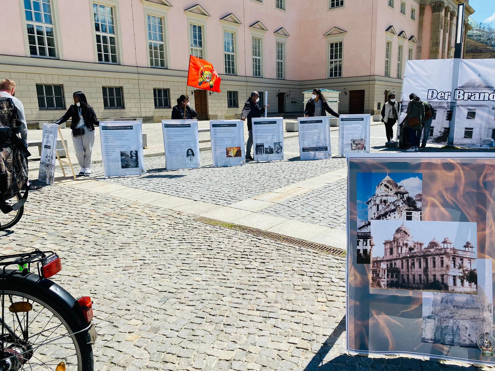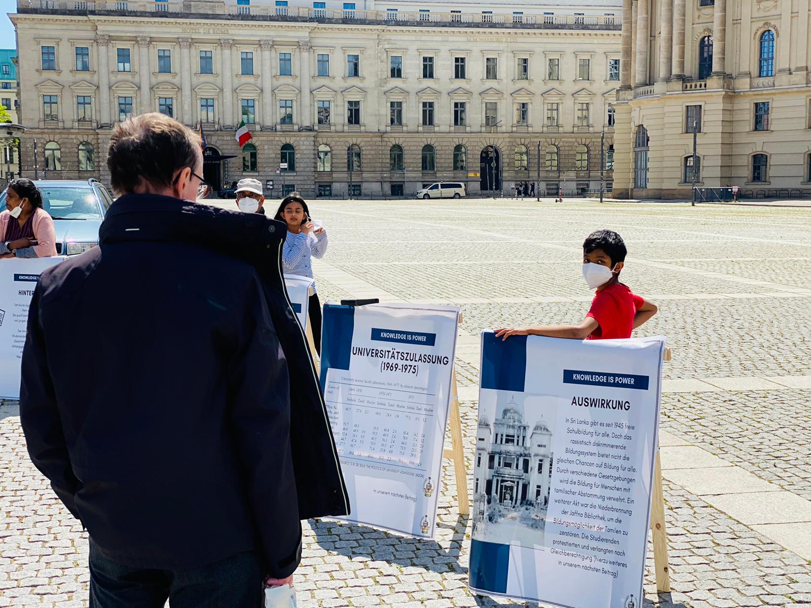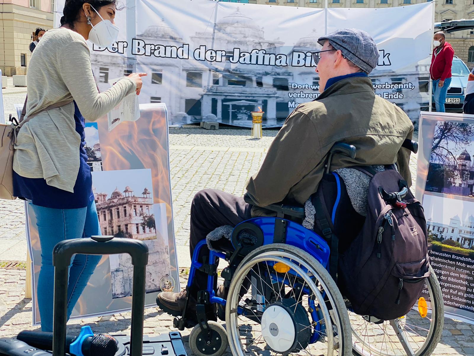 யூதர்களின் மீது இன அழிப்பை மேற்கொண்டபோது ஹிட்லர் தனது நாசிப் படைகளை ஏவி யூதர்களின் படைப்புகளைத் குவித்து அழித்த இடத்தில் (Bebelplatz, Berlin ) யாழ் நூலக எரிப்பின் 40 ஆம் ஆண்டு நினைவுவேந்தலை முன்னிட்டு கண்காட்சி நிகழ்வு இடம்பெற்றது.