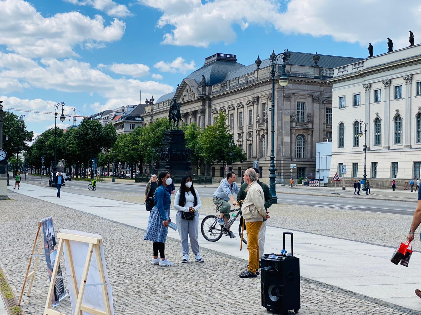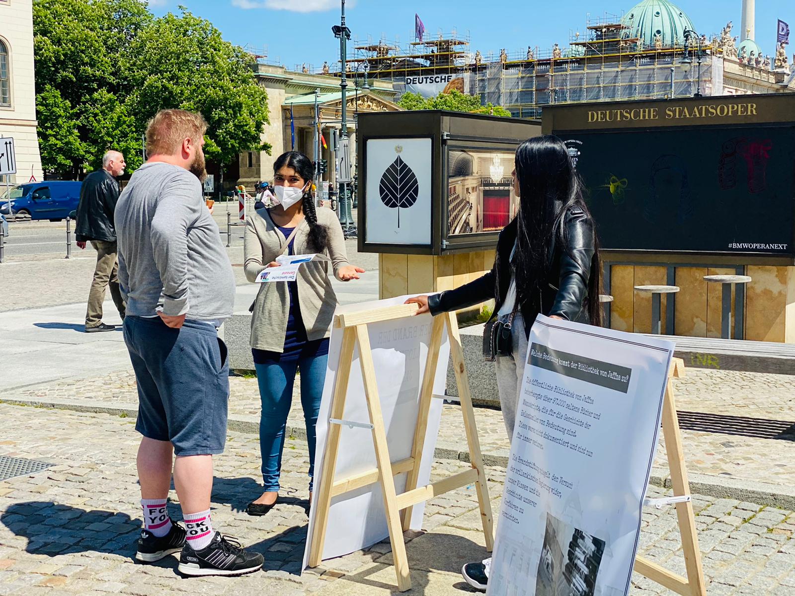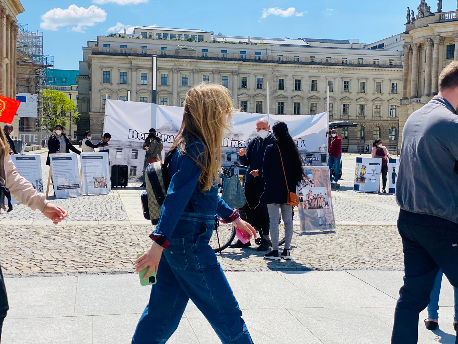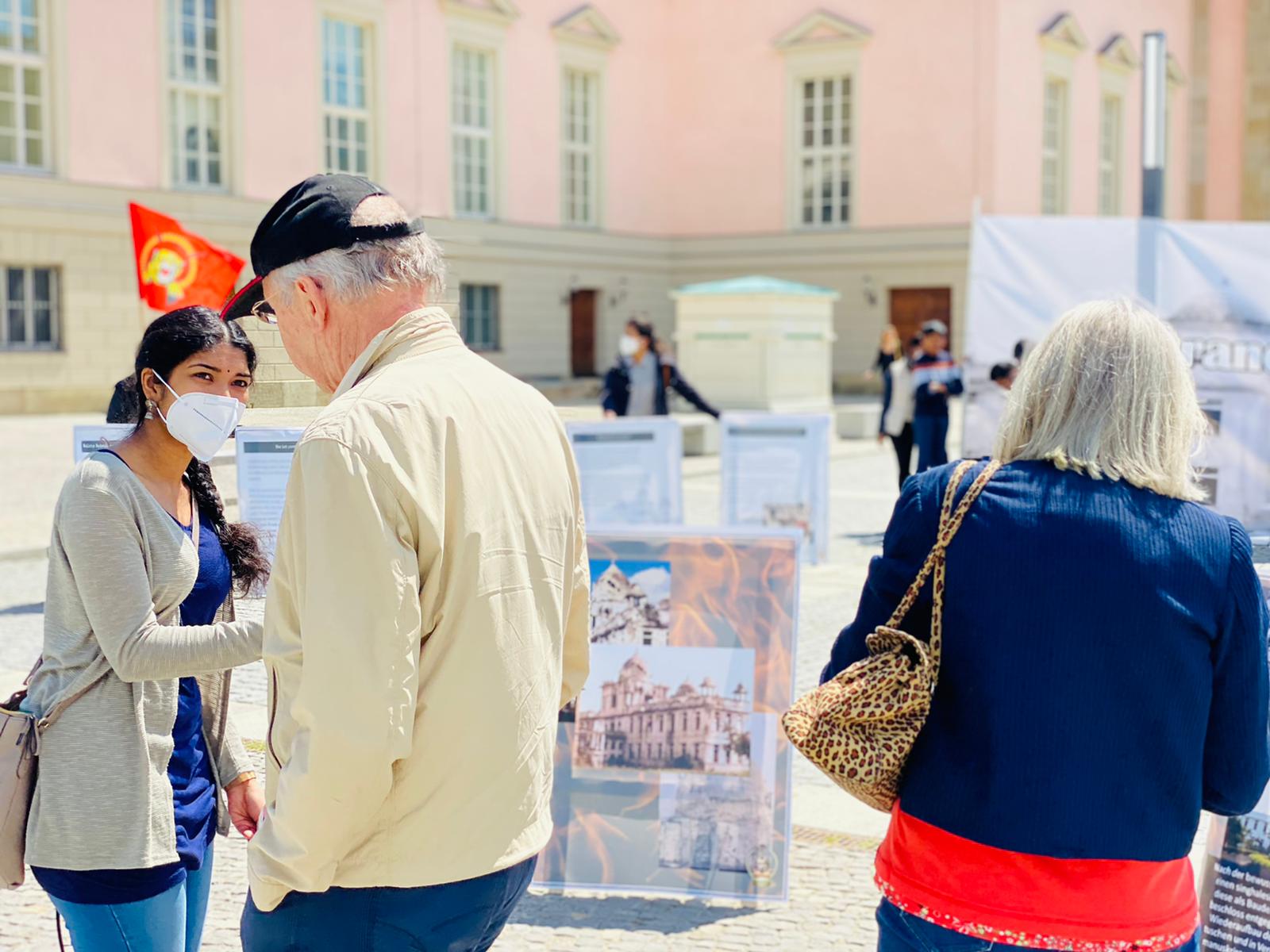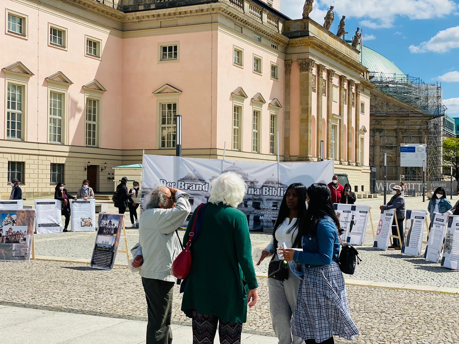 யூதர்களின் மீது இன அழிப்பை மேற்கொண்டபோது ஹிட்லர் தனது நாசிப் படைகளை ஏவி யூதர்களின் படைப்புகளைத் குவித்து அழித்த இடத்தில் (Bebelplatz, Berlin ) யாழ் நூலக எரிப்பின் 40 ஆம் ஆண்டு நினைவுவேந்தலை முன்னிட்டு கண்காட்சி நிகழ்வு இடம்பெற்றது.