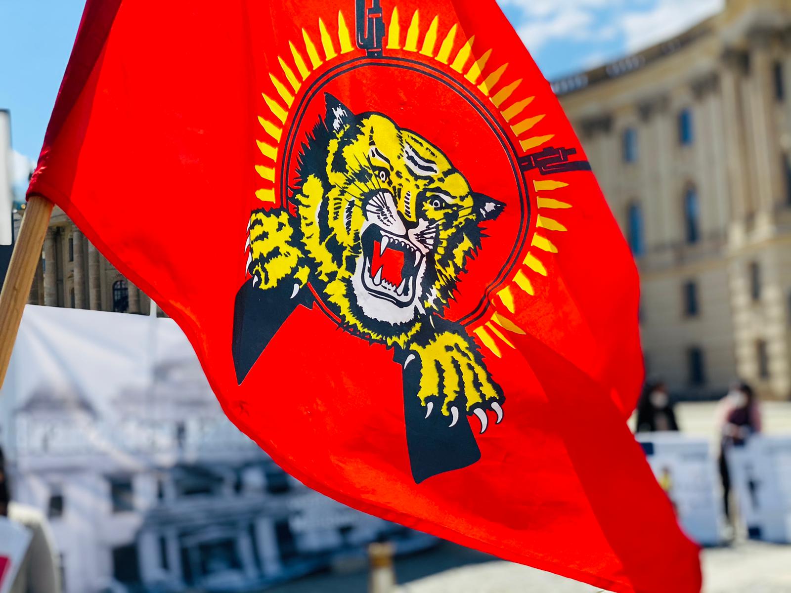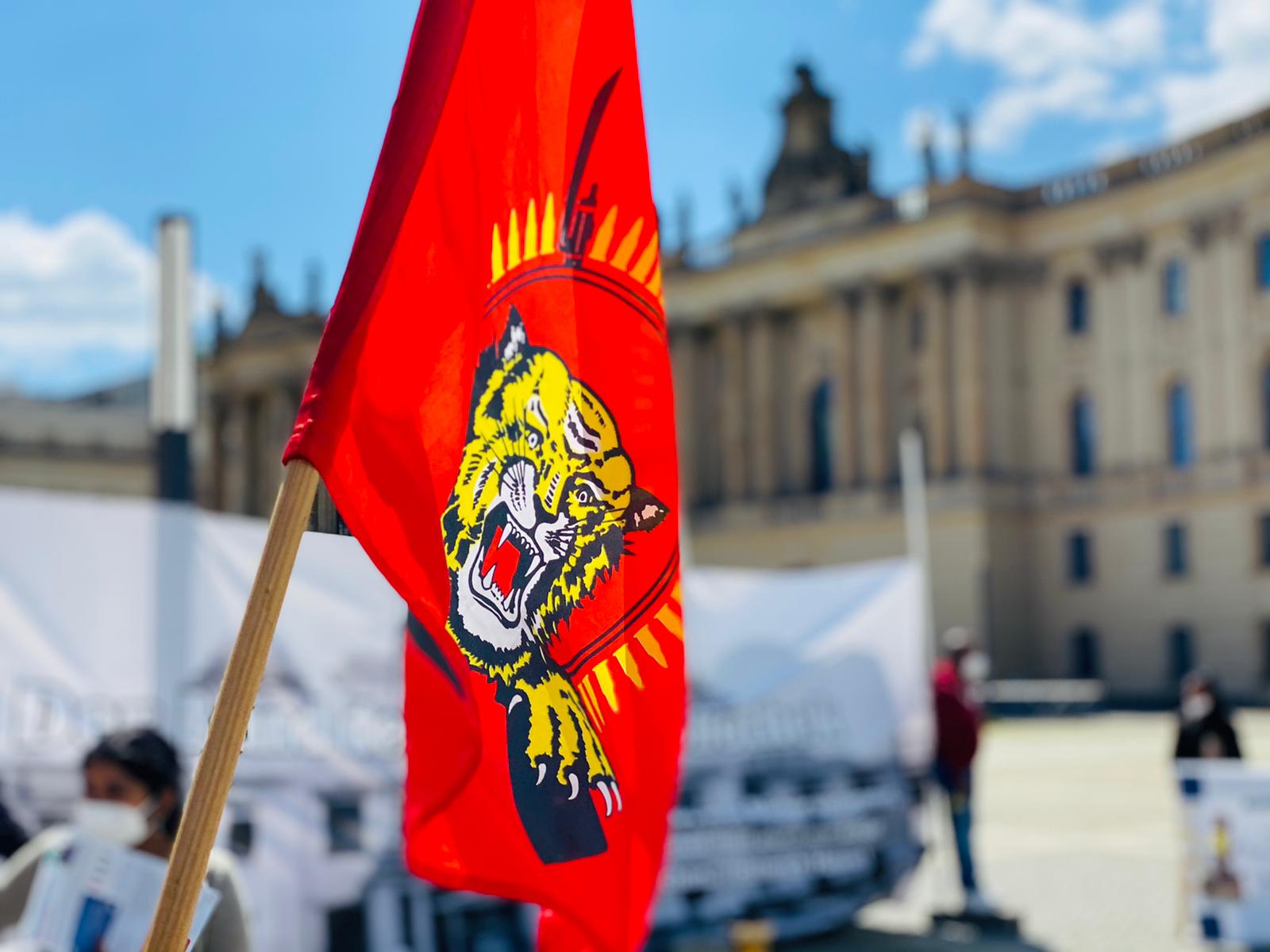 நிகழ்வு நடைபெற்றுக்கொண்டிருக்கும் வேளையில் திடீர் என காவல்துறை தமிழீழ தேசியக்கொடியை அகற்றும் மாறு வேண்டிக்கொண்டனர். அதற்கு மறுப்பு தெரிவித்த தமிழ் உணர்வாளர்கள், தொடர்ந்து காவல்துறைக்கு ஈழத்தமிழர்களின் தேசிக்கொடி சார்ந்து விளக்கம் அளித்தனர். இவ்விடையம் யேர்மன் நாட்டின் பாதுகாப்பு பிரிவுக்கு தெரிவிக்கப்பட்டு, இறுதியில் காவல்துறை தமிழ் உணர்வாளர்களிடம் தமது தேசிக்கொடியை தொடர்ந்தும் நிகழ்வில் வைத்திருக்கலாம்,அதற்கு எவ்வித தடையும் இல்லை, தம்மால் சரியான புரிதல் இல்லாது நடைபெற்ற இடையூறுக்கு தமது கவலையை தெரிவித்தனர்.