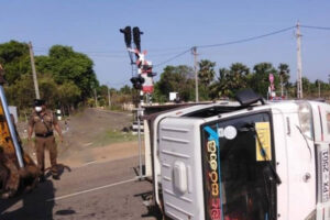 சோதனை சாவடிக்கு அருகில் கன்ரர் வாகனத்தை சடுதியாக நிறுத்த முற்பட்ட வேளையில் வாகனம் கட்டுப்பாட்டை இழந்து தடம் புரண்டு விபத்துக்குள்ளானதாக ஆரம்ப கட்ட விசாரணைகளில் தெரியவந்துள்ளது.