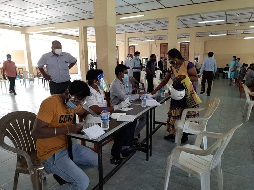 தமிழீழம் யாழ். பல்கலைக்கழகத்தில் கொரோனா தடுப்பூசி வழங்கும் நடவடிக்கை Posted on June 2, 2021 at 15:54 by தென்னவள் 290 0 கொரோனா தடுப்பூசி வழங்கும் நடவடிக்கைகள் இன்று யாழ். பல்கலைக்கழகத்தில் இடம்பெற்றன. அதிகளவு மக்கள் இச்செயற்றிட்டத்தில் ஆர்வத்துடன் பங்கேற்றனர்.