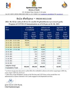 அதன்படி, நாட்டில் இதுவரை 846,583 பேருக்கு சைனோபார்ம் தடுப்பூசி போடப்பட்டுள்ளதாக அதில் குறிப்பிடப்பட்டுள்ளது.
