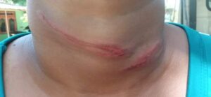 மகள் அணிந்திருந்த மூன்று பவுண் பெறுமதியான தங்கச் சங்கிலியைக் கழுத்தைத் திருகி இழுத்த அறுத்த திருடர்கள் அணிந்திருந்த ஒன்றரைப் பவுண் பெறுமதியான கைச்சங்கிலி, இரண்டு மோதிரம், காப்புகள் என்பவற்றையும் பறித்தெடுத்தனர். இதனால், குறித்த பெண்ணின் கழுத்தில் இரத்தக் காயங்கள் ஏற்பட்டன.