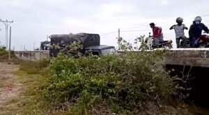 இன்று யாழ் குடாநாட்டில் மழையுடன் கூடிய காலநிலை நிலவு வரும் நிலையில் யாழ்ப்பாணம் பருத்தித்துறை பிரதான வீதியில் உள்ள வல்லை பாலத்தில் வாகனம் ஒன்று விபத்துக்குள்ளாகியுள்ளது.