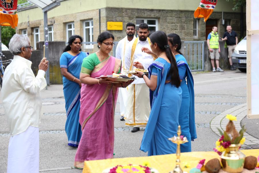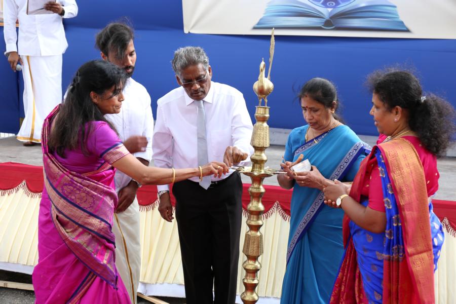 அதனைத் தொடர்ந்து தமிழினத்தின் மரபு தழுவி மங்கல விளக்கு ஏற்றும் நிகழ்வு இடம்பெற்றது மங்கல விளக்கினை தமிழர் ஒருங்கிணைப்புக் குழுவின், யேர்மனிக்கிளைப் பொறுப்பாளர், திரு. யோ.சிறிரவி அவர்களும், அனைத்துலகத் தமிழர் கல்வி மேம்பாட்டுப் பேரவையின் வழங்கற் பிரிவு இணைப்பாளர் திருமதி சுபத்திரா யோகேந்திரன் அவர்களும், யேர்மன் தமிழ்ப் பெண்கள் அமைப்புப் பொறுப்பாளர் திருமதி வசந்தி மனோகரன் அவர்களும், தமிழ்க் கல்விக் கழகத்தின் நிதிப் பிரிவுப் பொறுப்பாளர் திருமதி. மோகனேஸ்வரி குணாளன் அவர்களும், தமிழ்க் கல்விக் கழகத்தின் முன்னணிச் செயற்பாட்பாளர்களில் ஒருவரான செல்வன். பிரவீன் செல்வேந்திரன் அவர்களும் ஏற்றிவைத்தனர்.