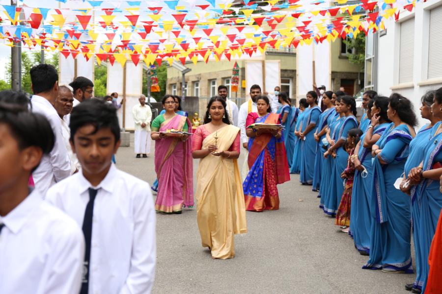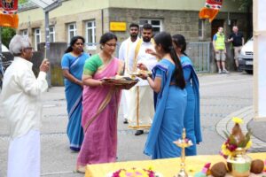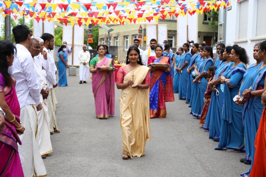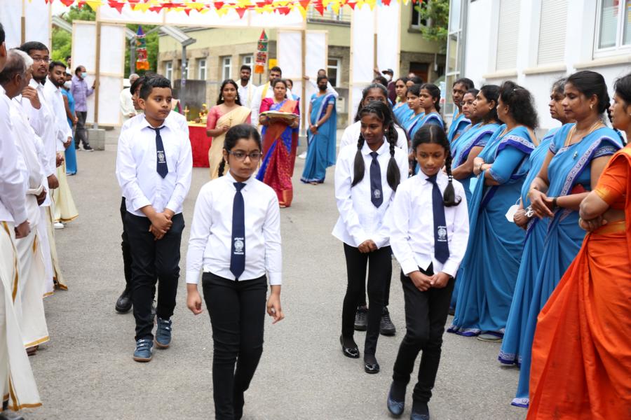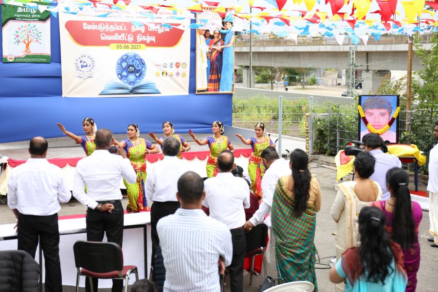 தமிழினத்தின் பண்பாட்டிற்கிசைவாகத் தீபஒளியேந்திவர, நூலாக்கற் குழுவினர் புடைசூழ மழலையர் நிலைக்கான நூலினை, நூலாக்கற் குழுவின் உறுப்பினர்களில் ஒருவரான திருமதி யமுனாராணி தியாபரன் அவர்களும், சிறுவர் நிலைக்கான நூலினை, அனைத்துலகத் தமிழர் கல்வி மேம்பாட்டுப் பேரவையின் வழங்கற் பிரிவுப் பொறுப்பாளர் அவர்களும் வெளியீட்டிற்காக எடுத்துவந்து யேர்மன் தமிழ்க் கல்விக் கழகப் பொறுப்பாளர் திரு. செல்லையா லோகானந்தம் அவர்களிடம் கையளித்தனர்.