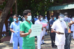 வேலைநிறுத்தத்தில் ஈடுபட்டிருந்த போதிலும் கொவிட் தொற்றாளர்களுக்கு அவசர தேவை ஏற்படின் அதற்காக கடமையாற்றுவதாக அரச தாதியர் சங்கத்தின் தலைவர் சமன் ரத்னபிரிய தெரிவித்துள்ளார்.