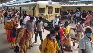 குறித்த நேரத்திற்கு மட்டும்தான் டிக்கெட் வினியோகிக்கப்படுகிறது. பொதுமக்கள் பயணம் செய்ய இன்னும் அனுமதிக்கவில்லை. ஆனாலும் கூடுதலாக ரெயில்கள் இயக்கப்பட்டு வருகின்றன.