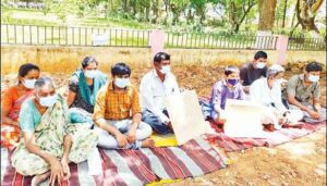 கொத்தூர் கிராமத்தை சேர்ந்தவர் சரஸ்வதி (வயது 77) என்பவர் தனது மகன்கள் மற்றும் குடும்பத்துடன் வேலூர் மாவட்ட போலீஸ் சூப்பிரண்டு அலுவலகம் முன்பு உண்ணாவிரத போராட்டத்தில் ஈடுபட்டார்.