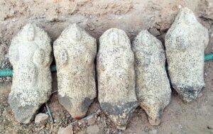 இதில், 6 அடி ஆழத்துக்கு குழி தோண்டியபோது, கற்களால் ஆன சுவாமி சிலைகள் மண்ணுக்குள் புதைந்திருந்தது தெரியவந்தது. இதையடுத்து, பக்கவாட்டில் சுற்றிலும் குழி தோண்டப்பட்டு, மண்ணில் புதைந்திருந்த தலா ஓரடி உயரமுள்ள 6 சுவாமி கற்சிலைகள் வெளியே எடுக்கப் பட்டன.