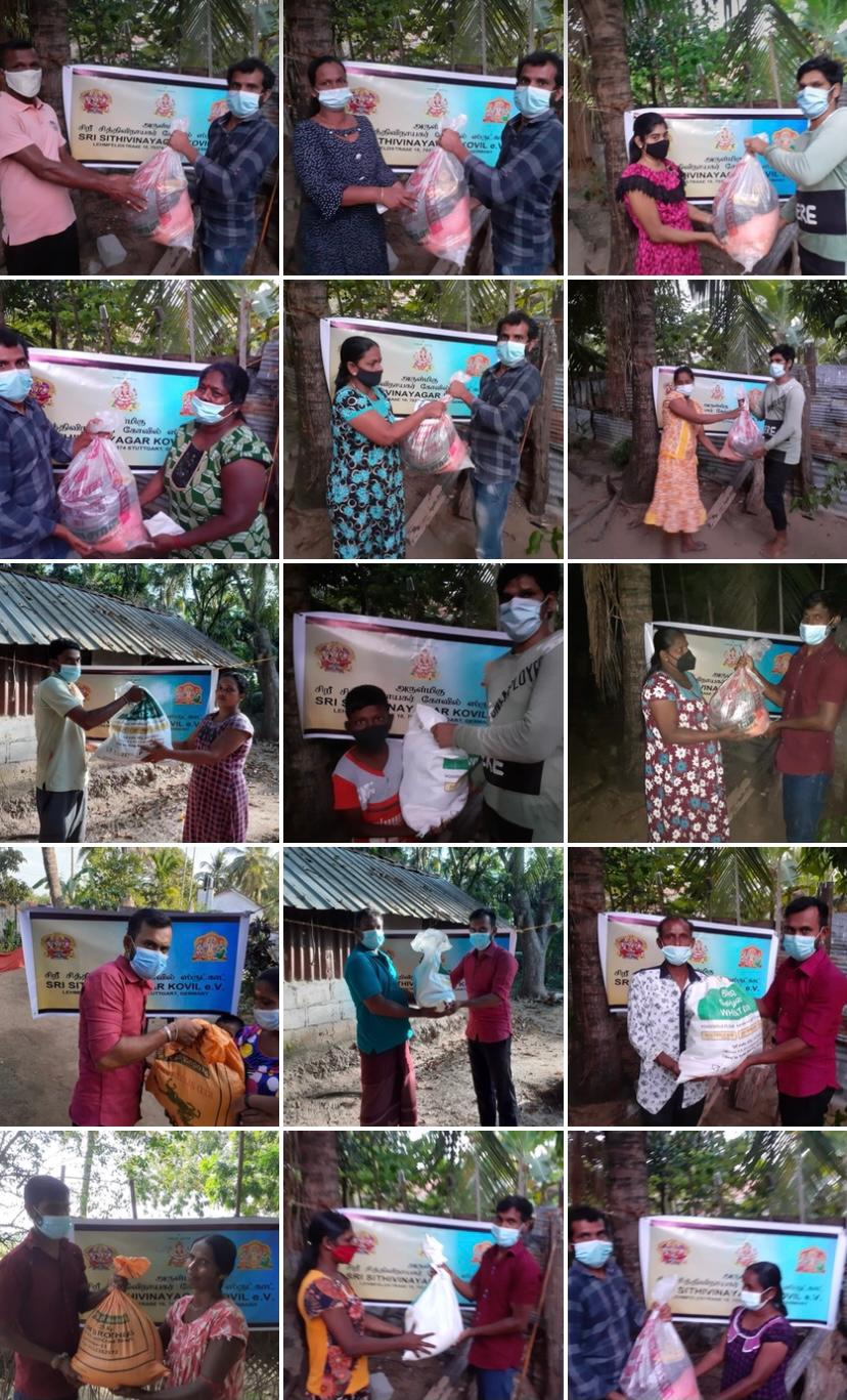 யேர்மனி ஸ்ருட்காட் சிறி சித்திவிநாயகர் கோயில் நிதிப்பங்களிப்பில் இடர்கால நிவாரணப்பணிகள் 25.06.2021 அன்று அம்பாறை மாவட்டம் நாவிதன்வெளி சென்றல்காம் மற்றும் நீலாவனை தொடர் மாடி குடியிருப்பு பகுதிகளில் வறுமை நிலையில் வாழ்கின்ற மக்களில் 60 குடும்பங்களுக்கு உணவுப் பொருட்கள் வழங்கப்பட்டுள்ளன.இந்த உதவியினை வழங்கிய யேர்மனி ஸ்ருட்காட் சித்தி விநாயகர் கோயில் நிர்வாகத்தினருக்கு அம்பாறை மக்கள் தமது நன்றியினை தெரிவித்துள்ளனர்.