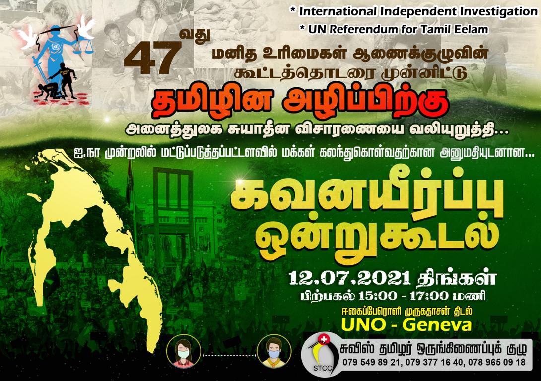 47வது மனித உரிமைகள் ஆணைக்குழுவின் கூட்டத்தொடரை முன்னிட்டு தமிழின அழிப்பிற்கு அனைத்துலக சுயாதீன விசாரணையை வலியுறுத்தி…