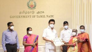 2019-2020-ம் ஆண்டிற்கான சிறந்த படைப்புகளுக்காக தேர்வு செய்யப்பட்ட கருப்பையன் (தடையும் ஒரு நாள் உடையும்), சண்முகசுந்தரம் (குப்பத்து ராஜாக்கள்), முனைவர் மோகன் (உயிர்த்தாள் உயிர் நீங்கினாள்), பாரதிராஜா (வெற்றி முழக்கங்கள்), முனைவர் காளிமுத்து (தமிழ் இலக்கியங்களில் மருத்துவம்), அன்டனூர் சுரா (எத்திசை செலினும்), மீனாசுந்தர் என்கிற மீனாட்சி சுந்தரம் (படைப்பு வெளியில் பதியும் பார்வைகள்), கமலம் சின்னசாமி (நலம் தரும் நாட்டு வைத்தியம்), முனைவர் ராஜா (உலக மயமாக்கல் சூழலில் நாட்டுப்புறக்கலைகள்- ஓர் பன்முகப்பார்வை – கட்டுரைத் தொகுப்பு), மு.வெ. ஆடலரசு (இசை மொழியும், ஆதி இனமும்) ஆகிய 21 சிறந்த எழுத்தாளர்களுக்கு முதல்-அமைச்சர் மு.க.ஸ்டாலின் இன்று தலைமைச் செயலகத்தில் முதல் தவணைத்தொகையாக தலா 20 ஆயிரம் ரூபாய்க்கான காசோலைகள் மற்றும் பாராட்டுச் சான்றிதழ்களை வழங்கினார்.
