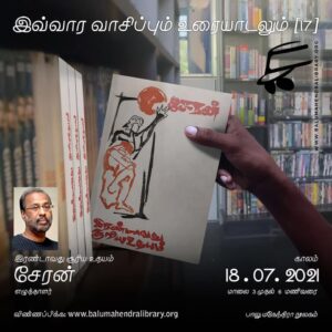 கொவிட்-19 நிலைமை காரணமாக இவ்வார வாசிப்பும் உரையாடலை இணைய வாயிலாக மாத்திரம் நடாத்தத் திட்டமிட்டுள்ளோம்.