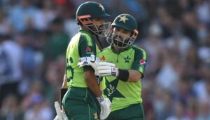 அதன்படி, பாகிஸ்தான் அணி நிர்ணயிக்கப்பட்ட 20 ஓவரில் 6 விக்கெட்டுக்கு 232 ரன்கள் குவித்தது. தொடக்க ஆட்டக்காரர்களான ரிஸ்வான், பாபர் அசாம் அரை சதமடித்து அசத்தினர். ரிஸ்வான் 63 ரன்களும், பாபர் அசாம் 85 ரன்களும் எடுத்தனர். பகர் சமான் 8 பந்தில் 3 சிக்சர், ஒரு பவுண்டரி உள்பட 26 ரன்கள் எடுத்து அவுட்டானார். ஹபீஸ் 10 பந்தில் 3 சிக்சர், ஒரு பவுண்டரி என 24 ரன்கள் எடுத்தார்.