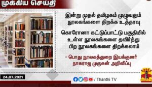 ந்நிலையில் கட்டுப்பாடுகளுடன் இன்று முதல் நூலகங்களை திறக்க பொதுநூலக இயக்குனரகம் அனுமதி அளித்துள்ளது.