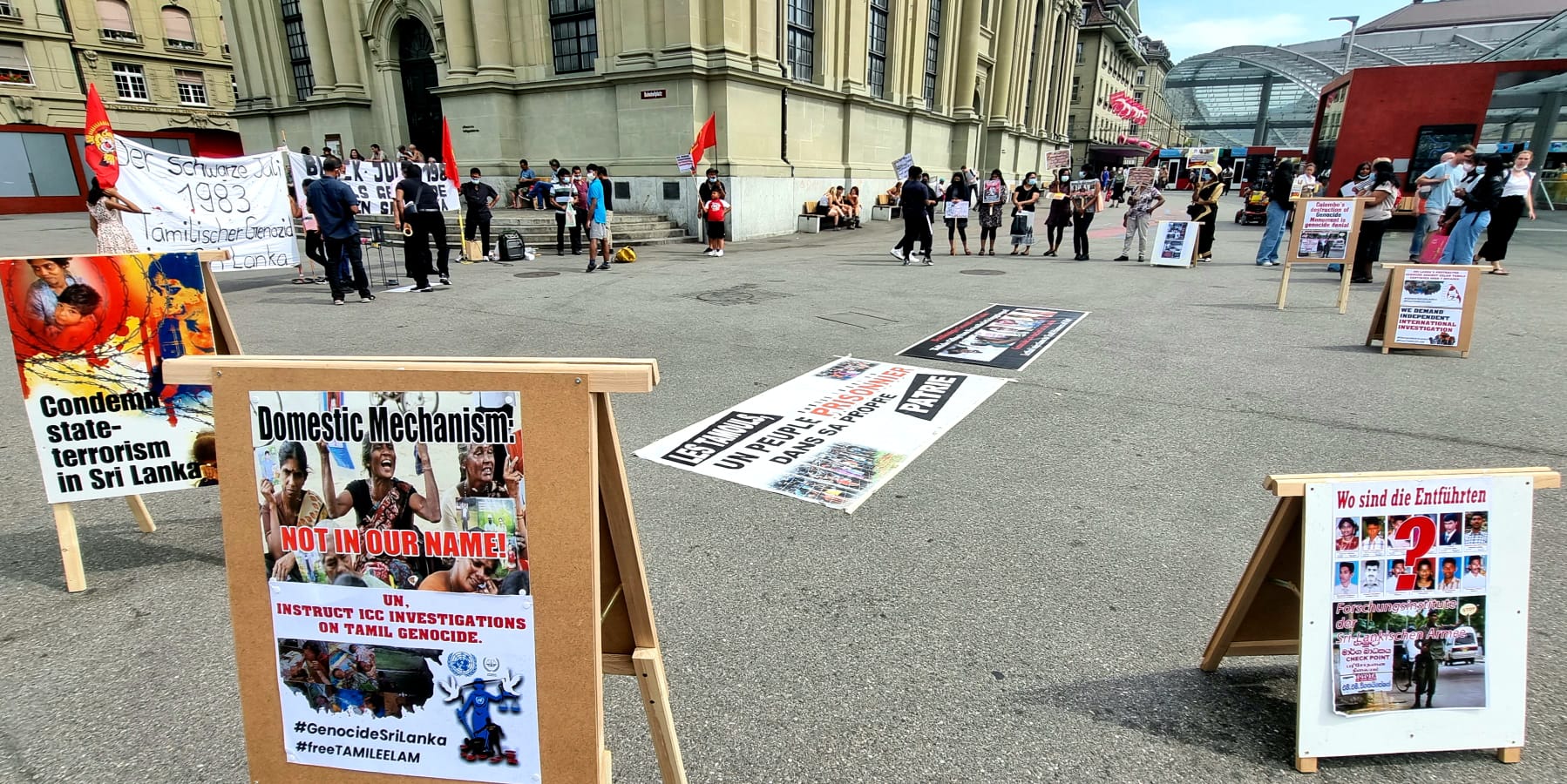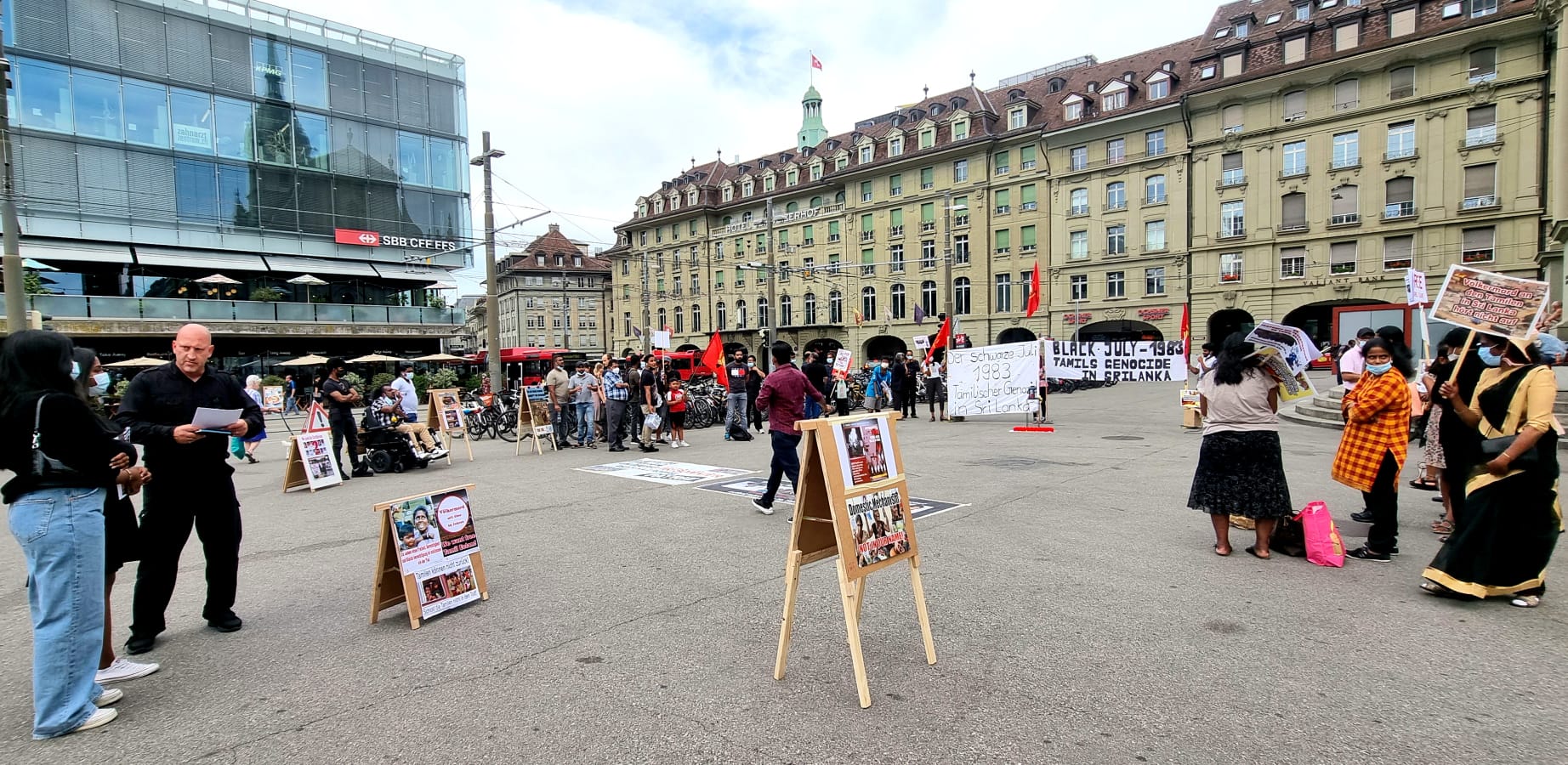 சுவிஸ் தமிழர் அரசியல் துறை, தமிழ்ப் பெண்கள் அமைப்பு, தமிழ் இளையோர் அமைப்புக்களின் ஏற்பாட்டில் ஒழுங்குபடுத்தப்பட்ட இவ் கவனயீர்ப்பு நிகழ்வானது 23.07.2021 அன்று பேர்ண் பிரதான தொடரூந்து நிலையத்தின் முன்றலில் முன்னெடுக்கப்பட்டது.