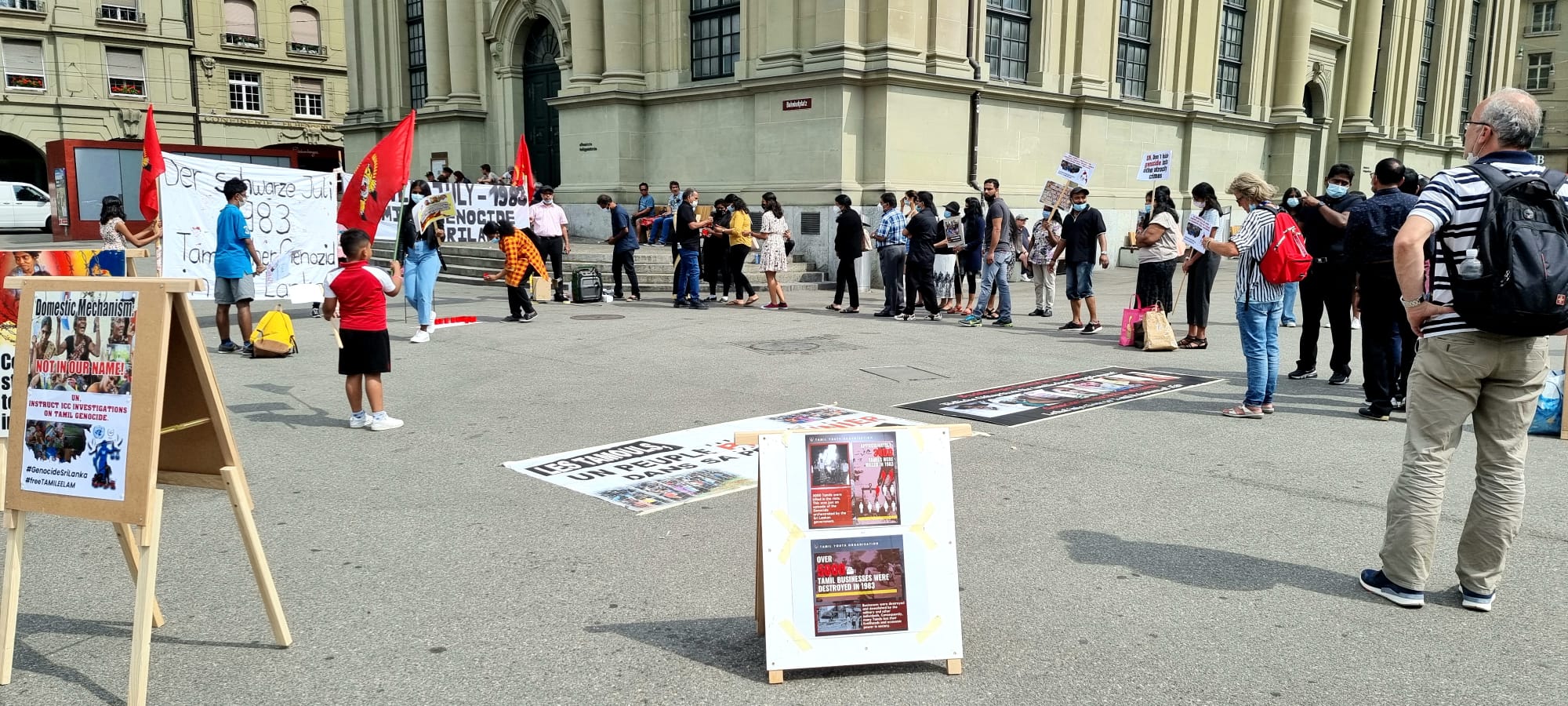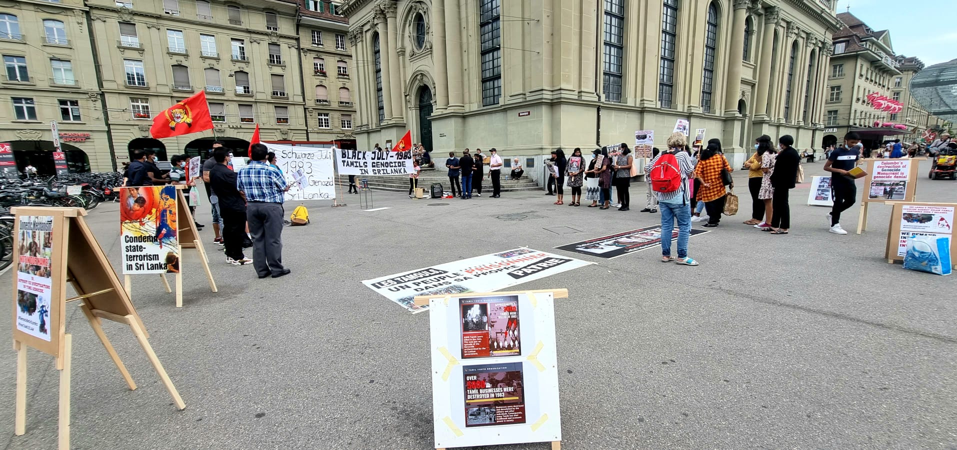 கறுப்பு ஜூலை சார்ந்தும் தொடர்ச்சியாக இன்றும் தமிழர் தாயக பகுதிகளில் இடம்பெற்றுவரும் திட்டமிட்ட இனவழிப்பு தொடர்பாகவும் தமிழின அழிப்புக்கான நீதி விசாரணைகளின் அவசியத்தையும் வலியுறுத்தி வேற்றின மக்களுக்கு விளக்கங்கள் கொடுக்கப்பட்டதுடன் இது தொடர்பான துண்டுப்பிரசுரங்களும் வழங்கப்பட்டது.