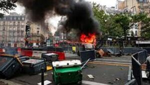 தலைநகர் பாரீசில் ஆயிரக்கணக்கான மக்கள் திரண்டு பேரணியாகச் சென்றனர். அப்போது அங்கு மோட்டார் சைக்கிளில் வந்த 2 போலீஸ் அதிகாரிகளை போராட்டக்காரர்கள் தாக்கியதால் பரபரப்பு ஏற்பட்டது. இதையடுத்து அங்கு 100-க்கும் மேற்பட்ட போலீசார் குவிக்கப்பட்டனர். இதனைத் தொடர்ந்து போராட்டக்காரர்களுக்கும் போலீசாருக்கும் இடையே பயங்கர மோதல் வெடித்தது.