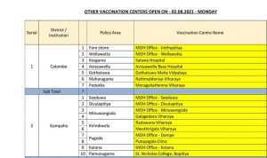 இதன்படி கொழும்பு,கம்பஹா மாவட்டங்களில் இன்று தடுப்பூசி வழங்கப்படும் மையங்கள் வருமாறு: