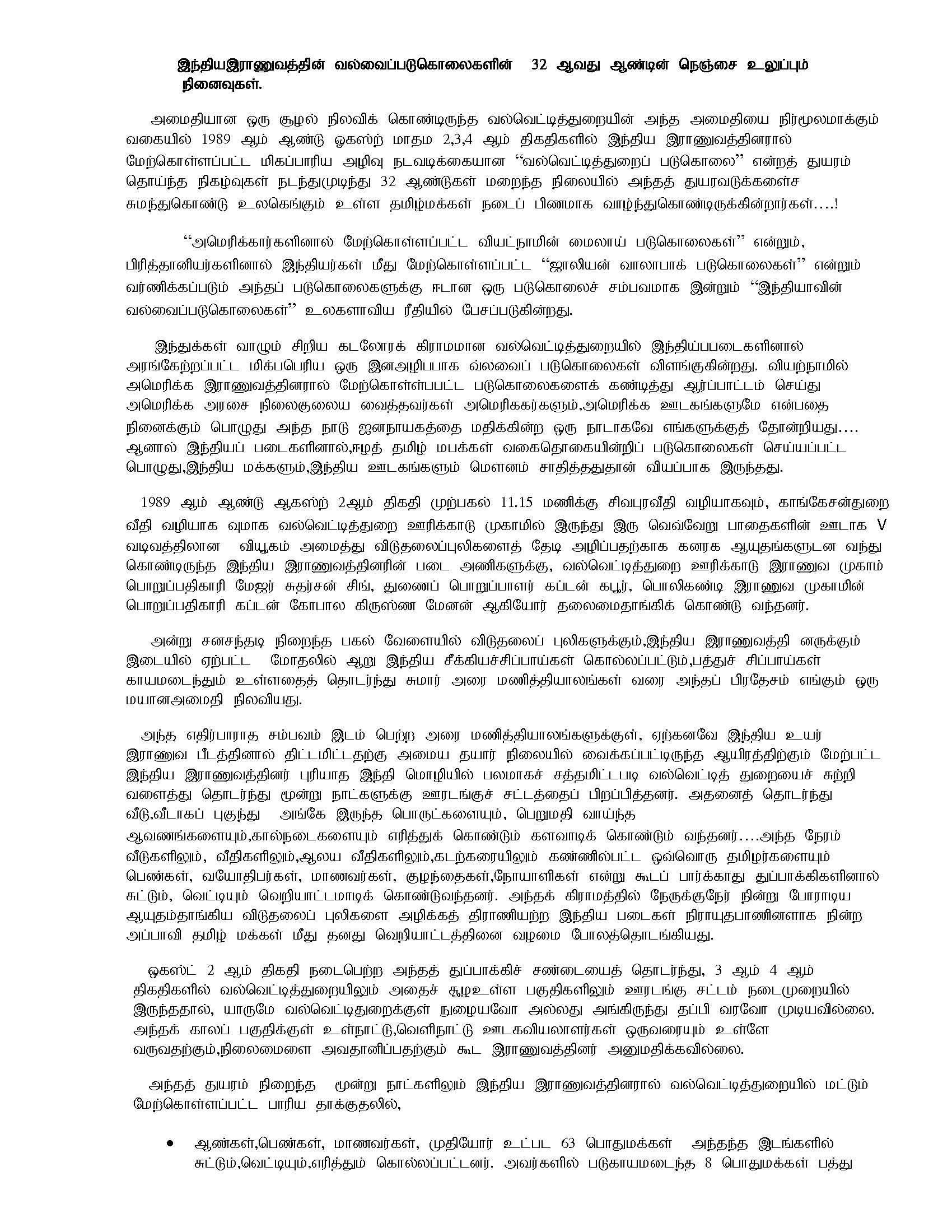 புலம்பெயர் தேசங்களில் முக்கிய செய்திகள் இந்திய இரானுவத்தின் வல்வைப் படுகொலைகள் 32 ஆவது ஆண்டின் நெஞ்சை உலுப்பும் நினைவுகள். Posted on August 2, 2021 at 13:45 by சமர்வீரன் 585 0 இந்திய இரானுவத்தின் வல்வைப் படுகொலைகள் 32 ஆவது ஆண்டின் நெஞ்சை உலுப்பும் நினைவுகள்.
