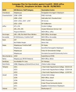 தமிழீழம் நாளை வியாழக்கிழமை தடுப்பூசிகள் வழங்கப்படும் நிலையங்கள் Posted on August 4, 2021 at 19:18 by தென்னவள் 285 0 நாளை வியாழக்கிழமை தடுப்பூசிகள் வழங்கப்படும் நிலையங்கள்