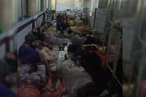 கொள்ளளவை விடவும் கொரோனாத் தொற்றாளர்களின் எண்ணிக்கை கிடுகிடுவென அதிகரித்துள்ளமையால், கொரோனா தொற்றாளர்கள் வைத்தியசாலைகள் பலவற்றில், நடைபாதைகளில் பாய்களைப் போட்டு, படுத்து தூங்கிக்கொண்டிருகின்றனர்.இது தொடர்பில் வீடியோ காட்சிகளும், புகைப்படங்களும் சமூக வலைத்தளங்களில் வைரலாகியுள்ளன. இது, பேரபத்தை ஏற்படுத்தும் என எச்சரிக்கை விடுக்கப்பட்டுள்ளது. அத்துடன், வைத்தியசாலைகள் பலவற்றில் அவசர நிலைமை பிரகடனப்படுத்தப்பட்டுள்ளது.