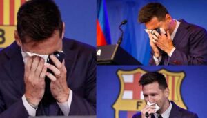 21 ஆண்டுகள் பார்சிலோனா அணிக்காக விளையாடிய நட்சத்திர கால்பந்து வீரர் மெஸ்சி, அந்த அணியில் இருந்து விலகுவதாகக் கண்ணீர் மல்கத் தெரிவித்தார்.