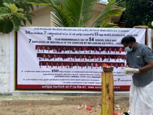 செஞ்சோலை படுகொலையின் 15ஆம் ஆண்டு நினைவேந்தல் நிகழ்வை முன்னிட்டு வடமாகாண சபையின் முன்னாள் உறுப்பினர் எம்.கே. சிவாஜிலிங்கம் சுடரேற்றி அஞ்சலி செலுத்தினார்.
