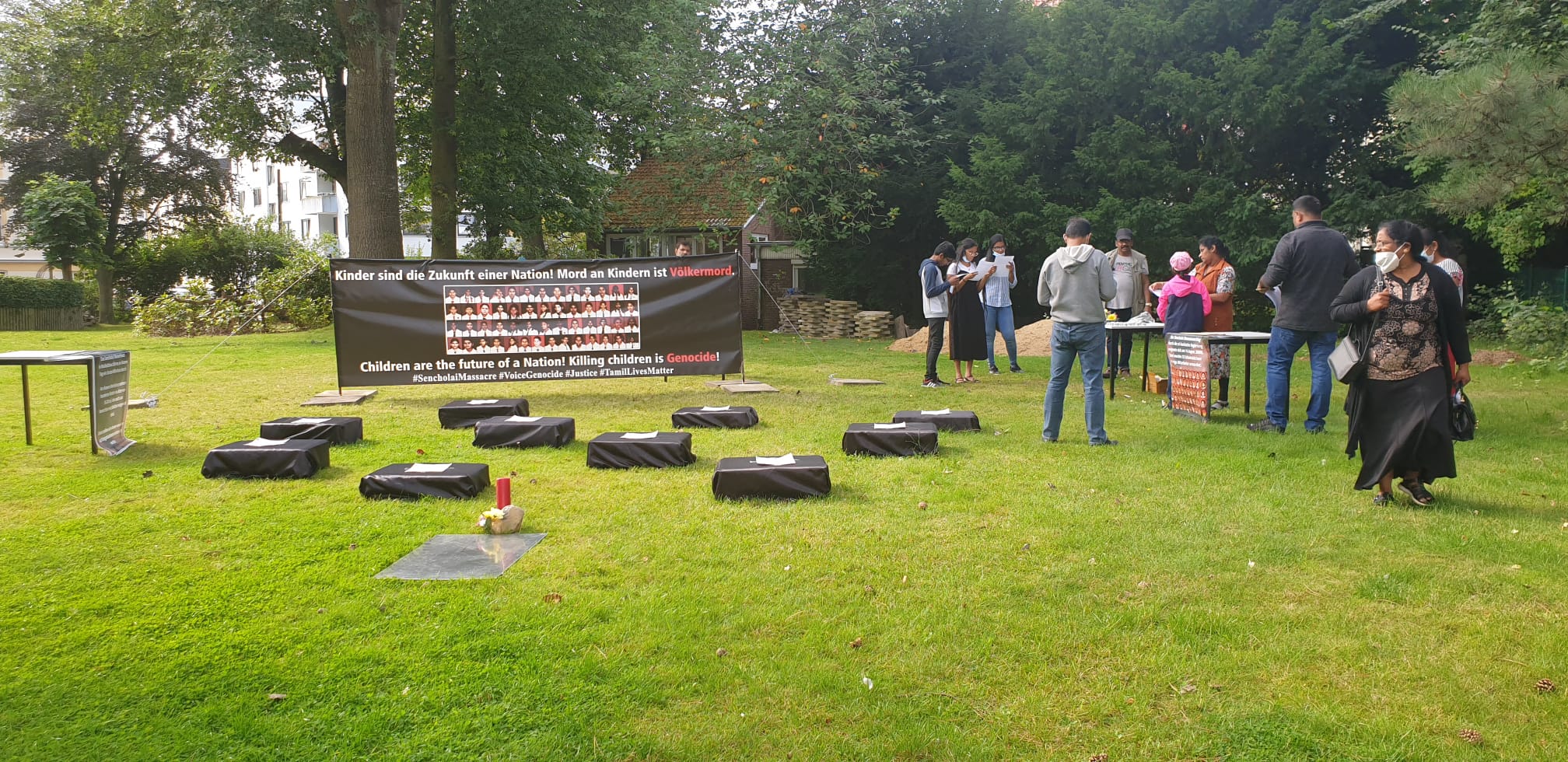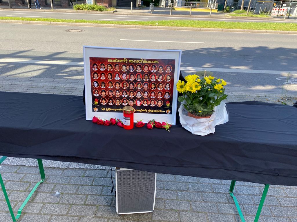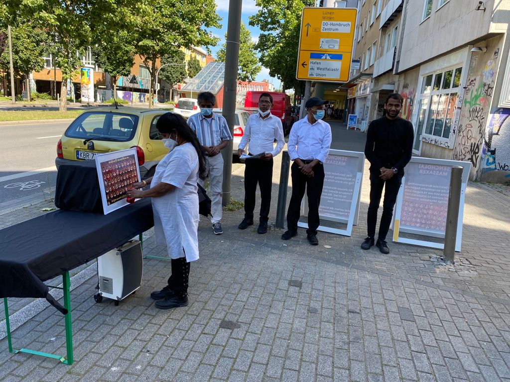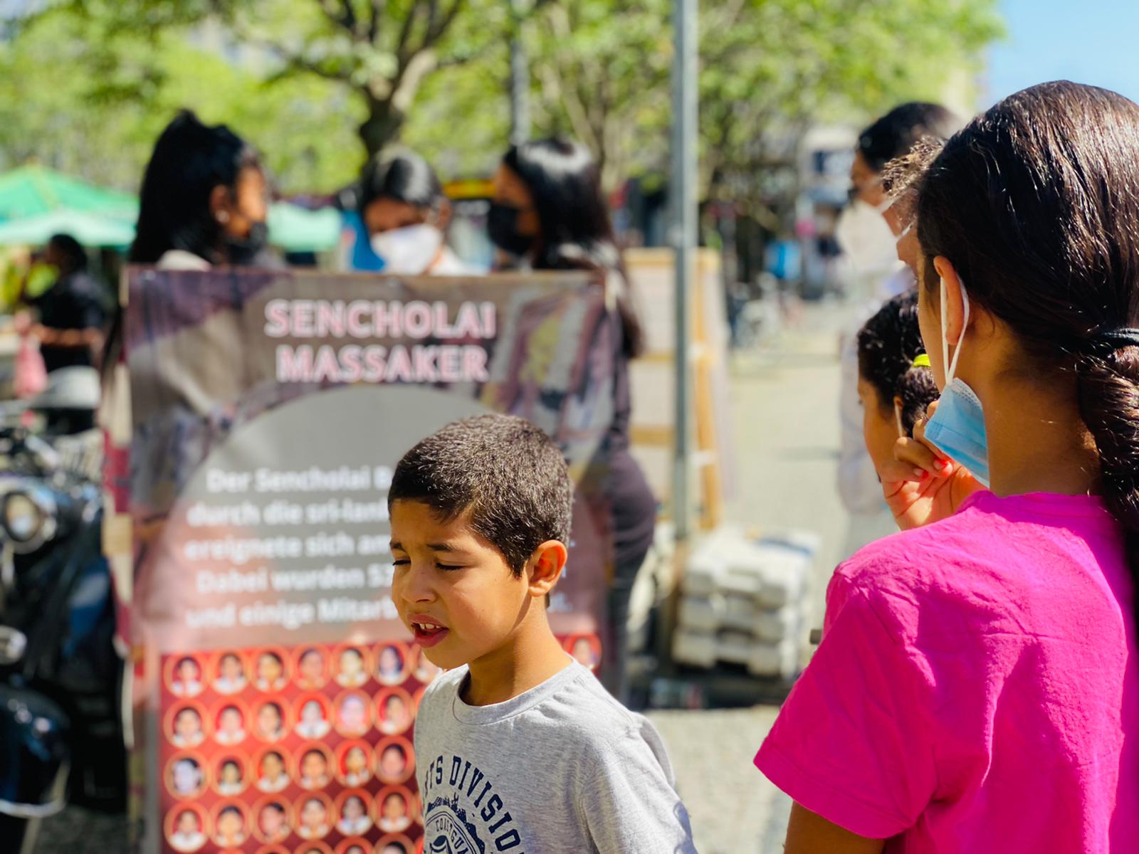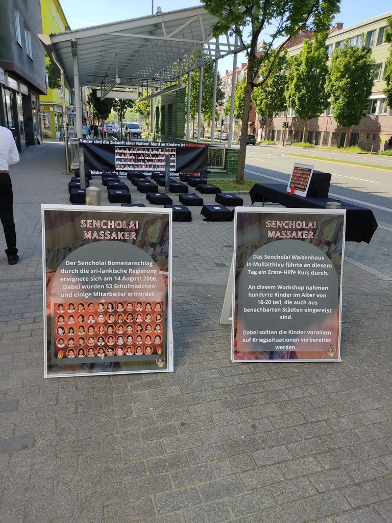 சிங்கள பேரினவாத அரசின் படுகொலையை வெளிப்படுத்தும் முகமாக பதாதையை ஏந்தியவாறு இளையோர்களால் பல்லின மக்களுக்கு யேர்மன் மொழியில் துண்டுப்பிரசுரம் விநியோகிக்கப்பட்டது. அத்தோடு செஞ்சோலை படுகொலையை பற்றிய சிறிய பதிவுகள் யேர்மன் மொழியில் வாசிக்கப்பட்டது.