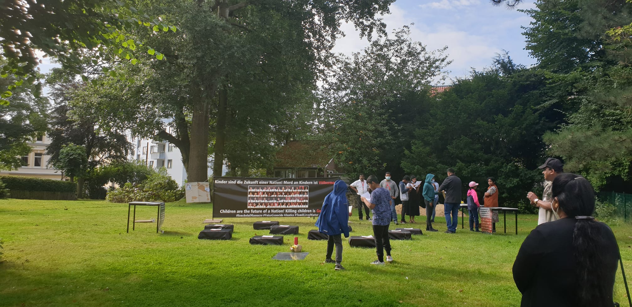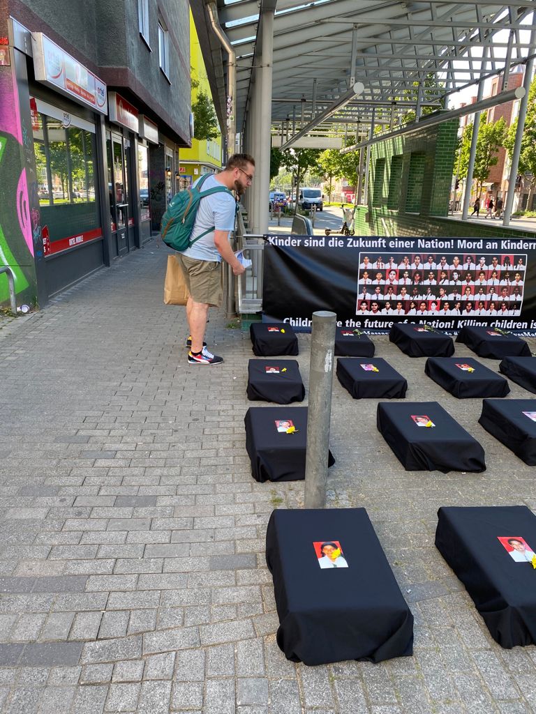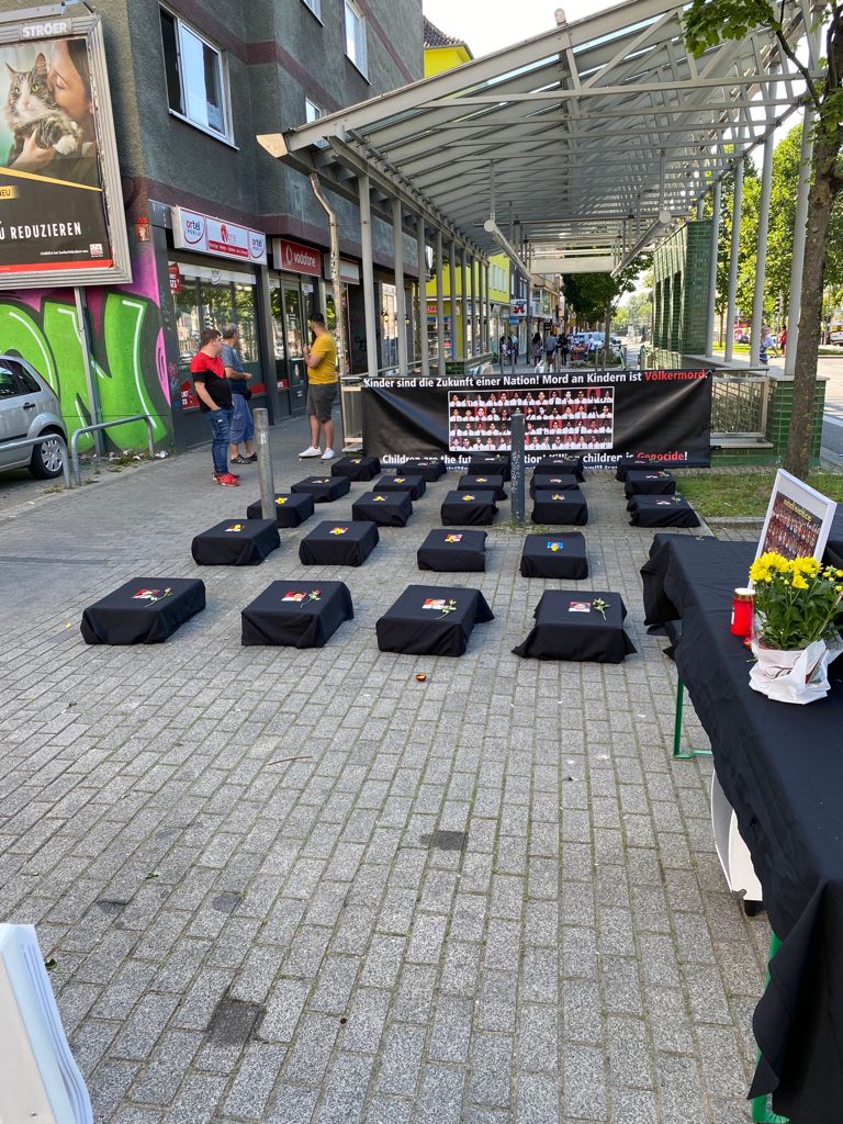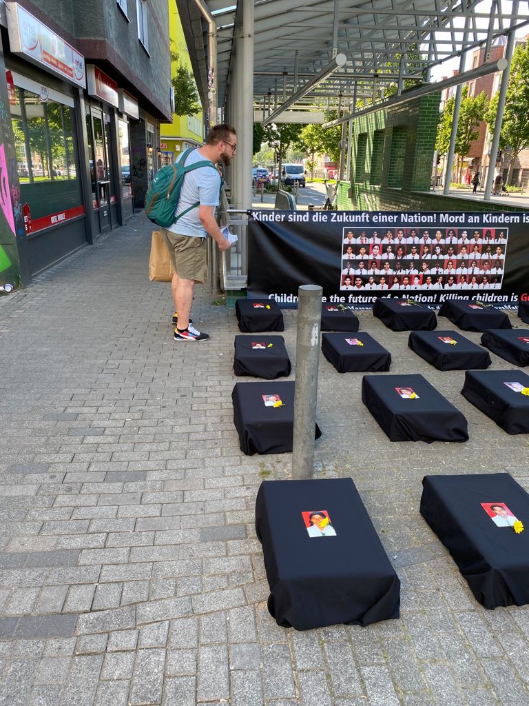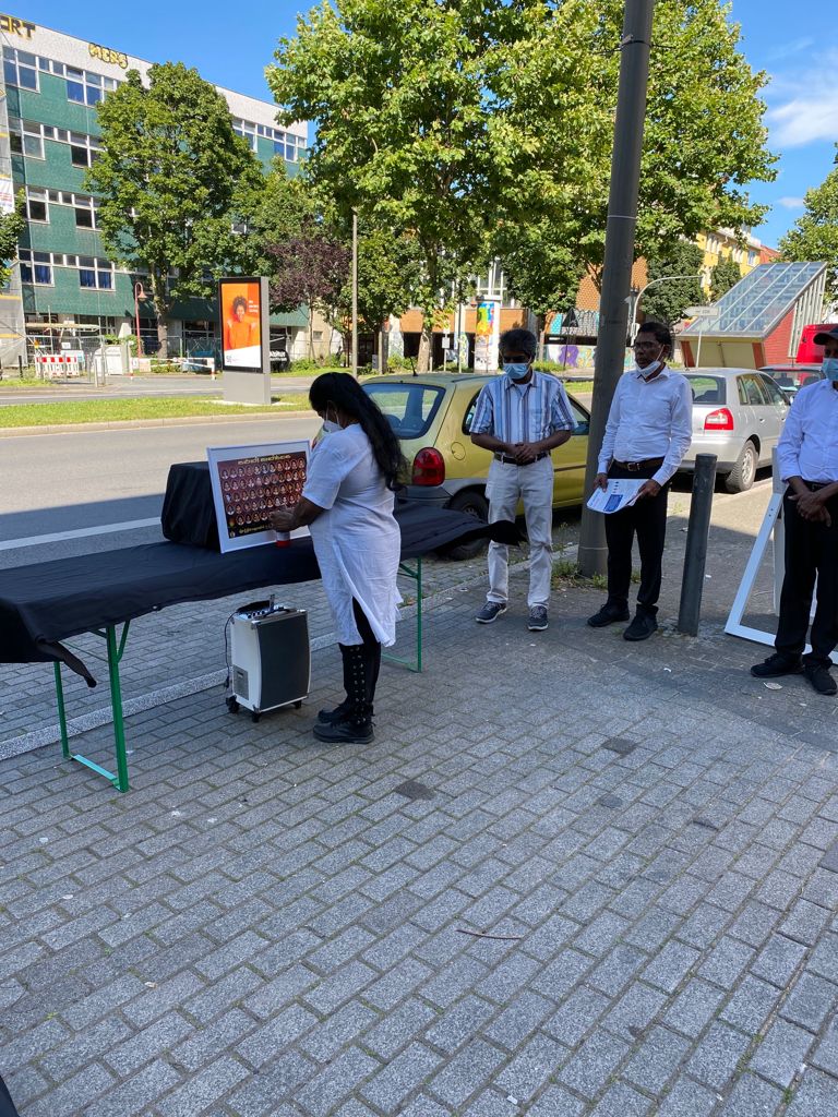 சிங்கள பேரினவாத அரசின் படுகொலையை வெளிப்படுத்தும் முகமாக பதாதையை ஏந்தியவாறு இளையோர்களால் பல்லின மக்களுக்கு யேர்மன் மொழியில் துண்டுப்பிரசுரம் விநியோகிக்கப்பட்டது. அத்தோடு செஞ்சோலை படுகொலையை பற்றிய சிறிய பதிவுகள் யேர்மன் மொழியில் வாசிக்கப்பட்டது.